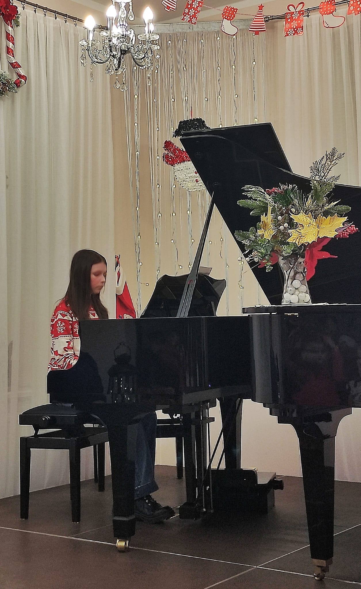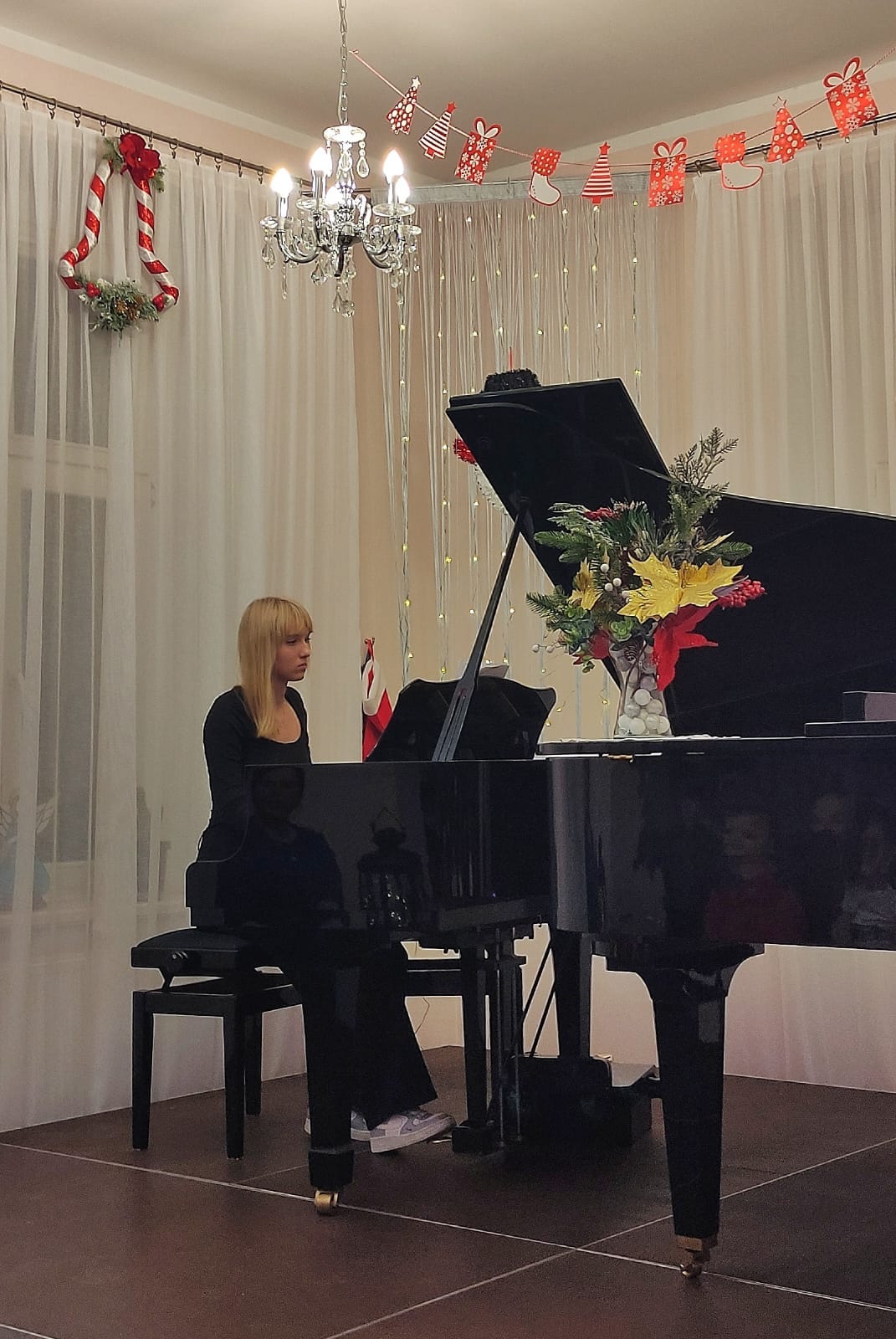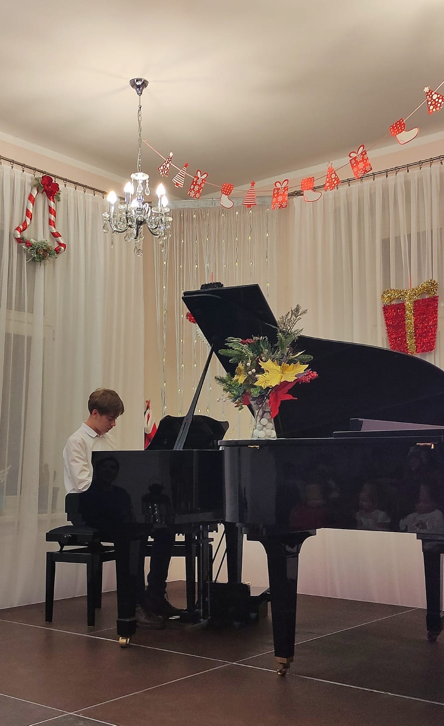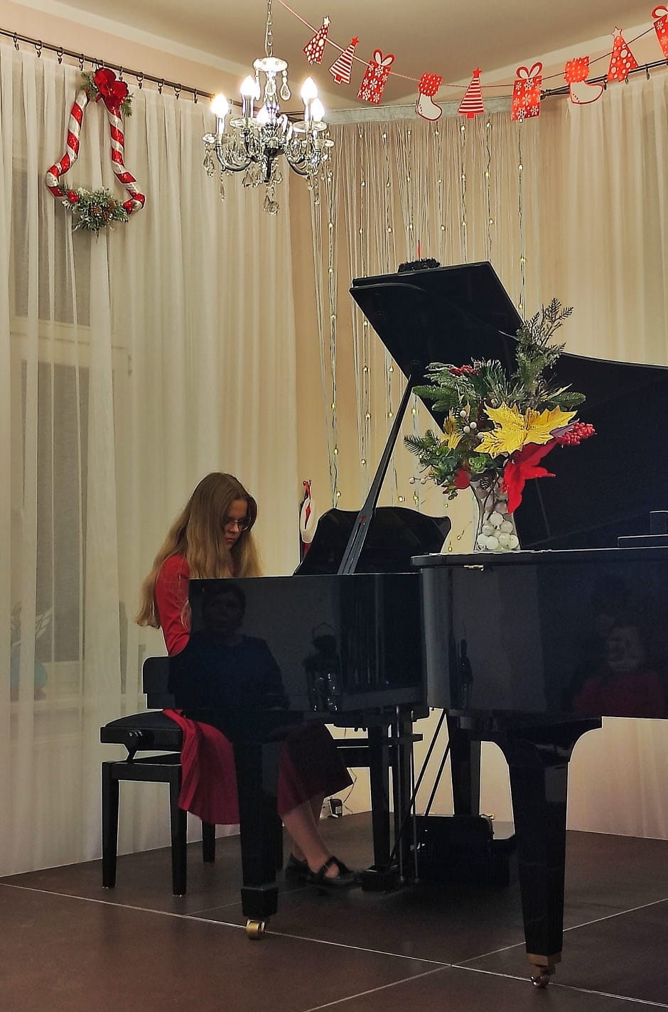 Na koncercie zaprezentowali się uczniowie fortepianu głównego i dodatkowego. Zabrzmiały kolędy i melodie świąteczne, które wprowadziły słuchaczy w nastrój Świąt Bożego Narodzenia i były pięknym muzycznym podarunkiem dla naszej publiczności.