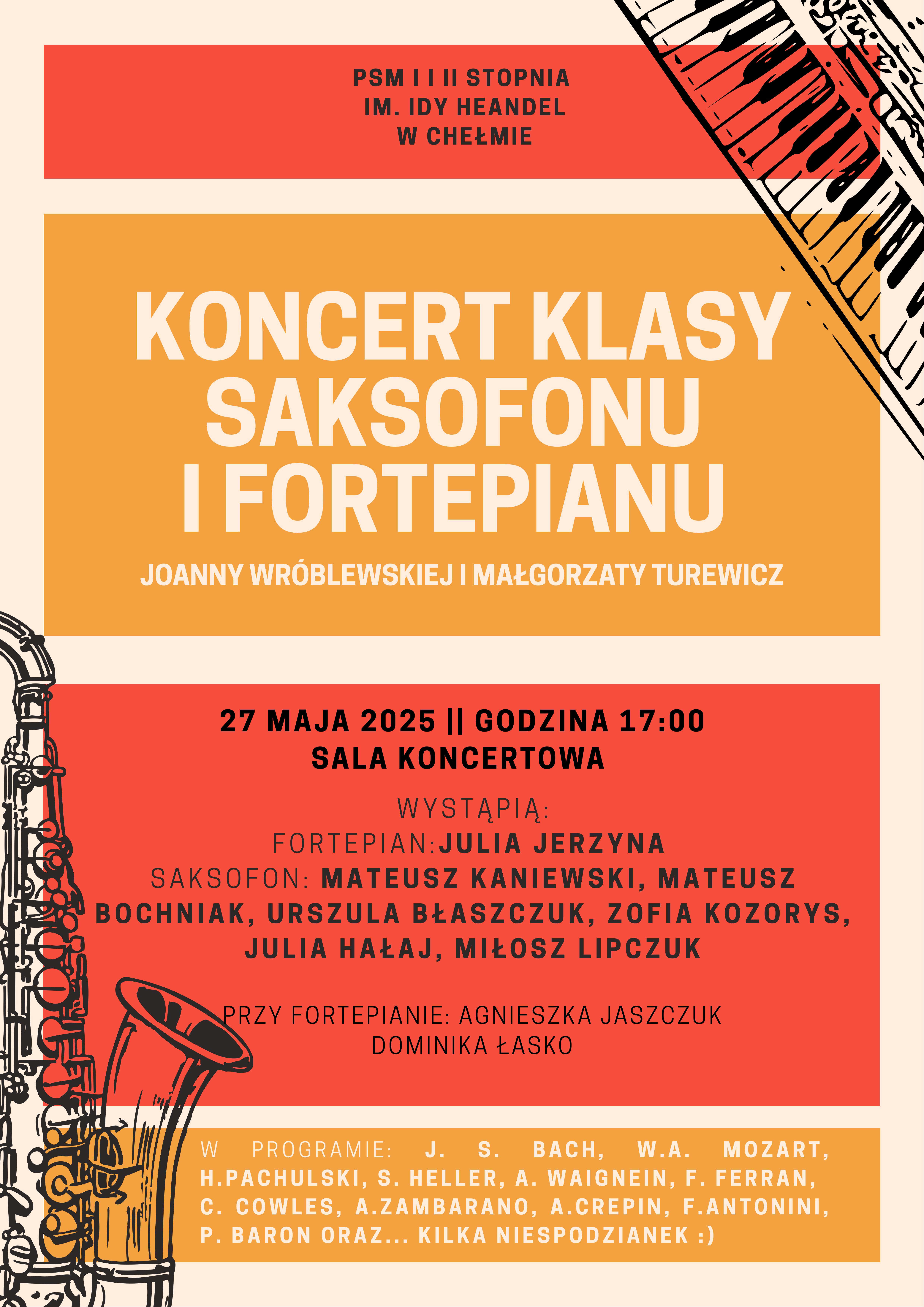 Koncert klasy saksofonu i fortepianu 27.05.2025