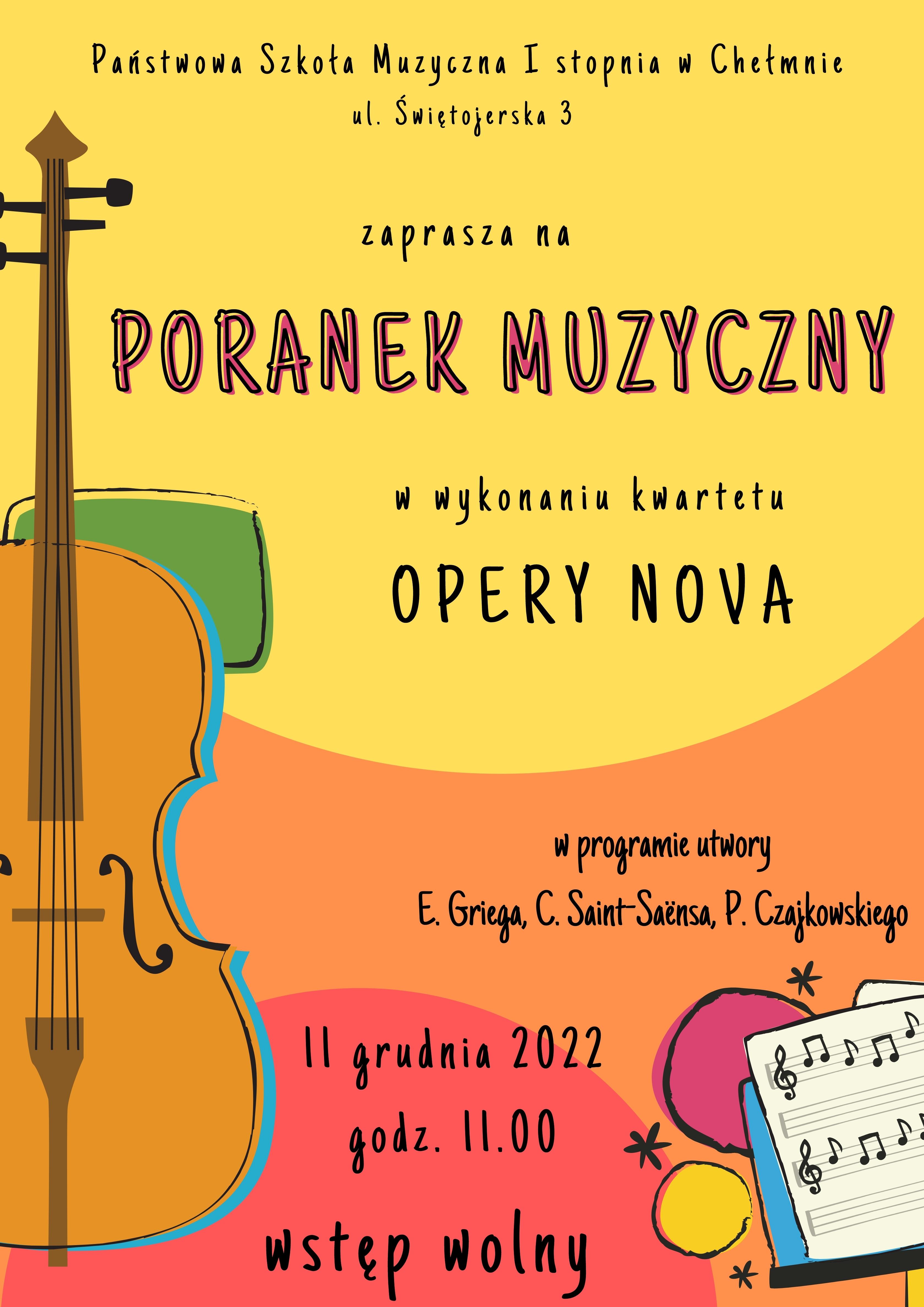11.12.2022 r. o godz. 11.00 zapraszamy na Poranek Muzyczny w wykonaniu Kwartetu Opery Nova.