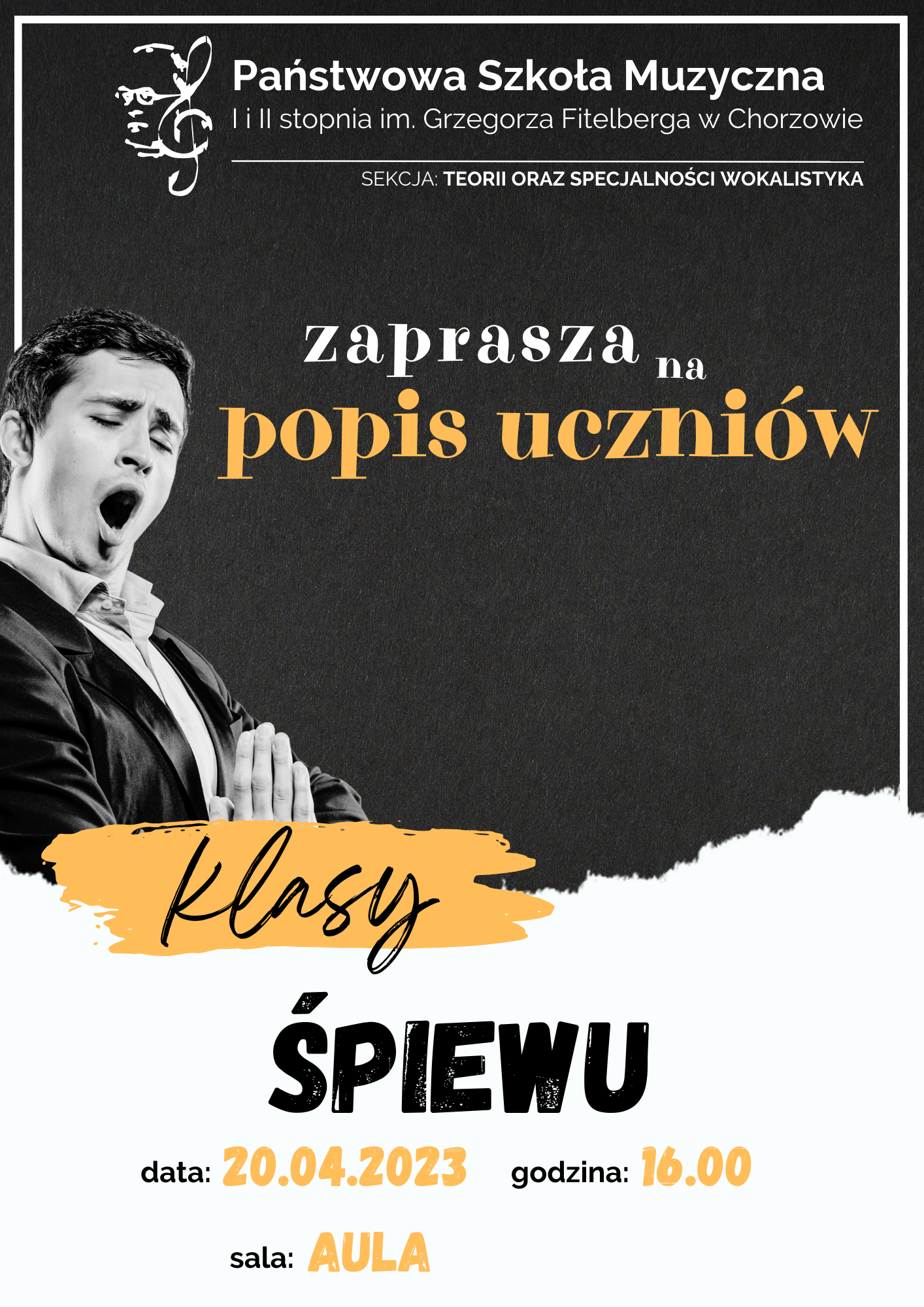 Wystąpią uczniowie szkoły muzycznej II stopnia z klasy śpiewu mgr Wioletty Białk-Kurzydlak, mgr Kariny Paszek oraz mgr Haliny Skubis-Kalemby.