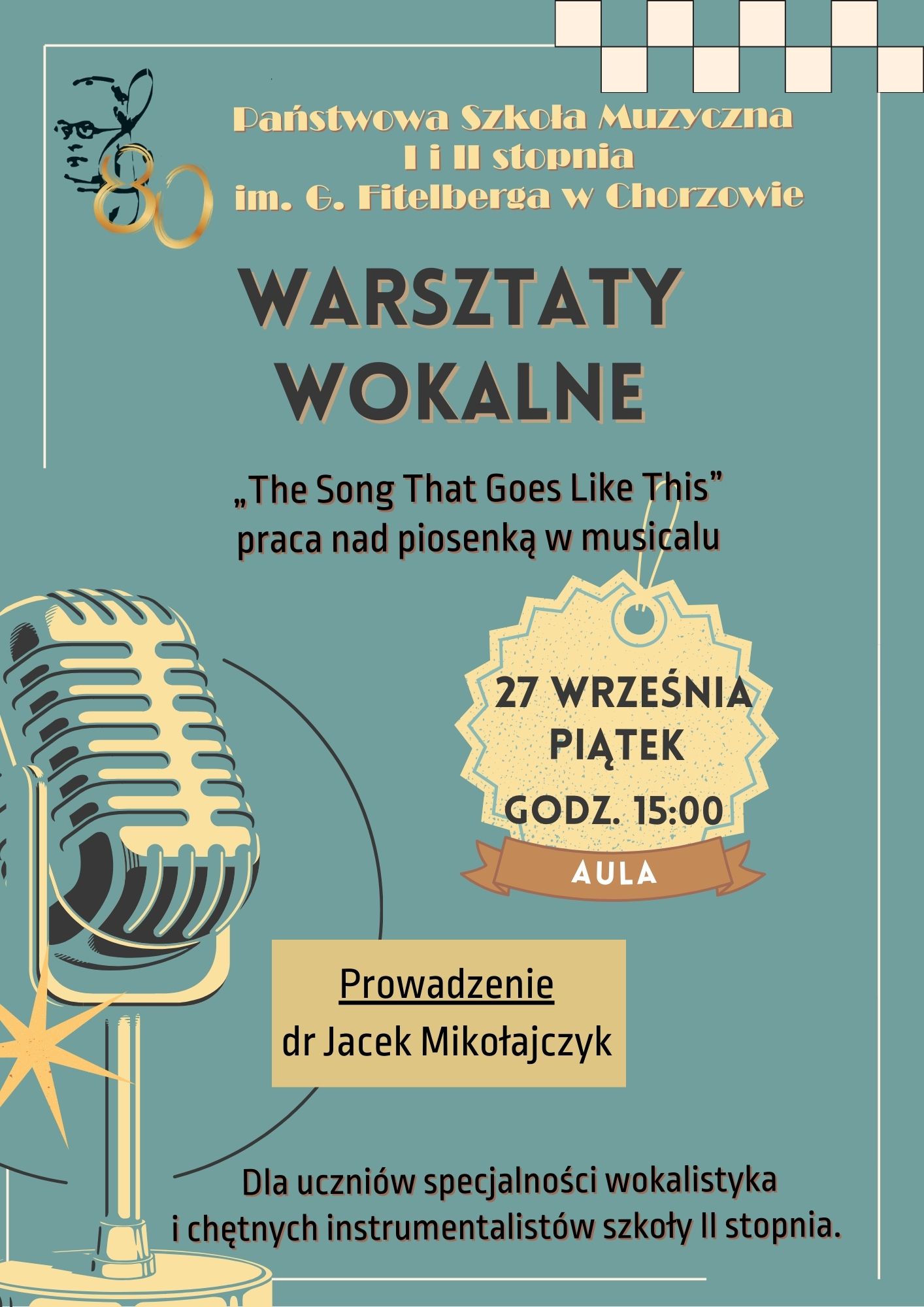Warsztaty wokalne prowadzone przez dr Jacka Mikołajczyka. Uczniowie mieli okazję popracować nad repertuarem musicalowym