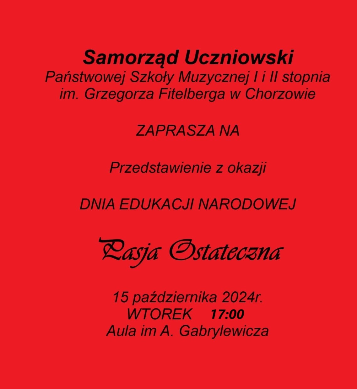 15 października 2024r. WTOREK 17:00 Aula im A. Gabrylewicza