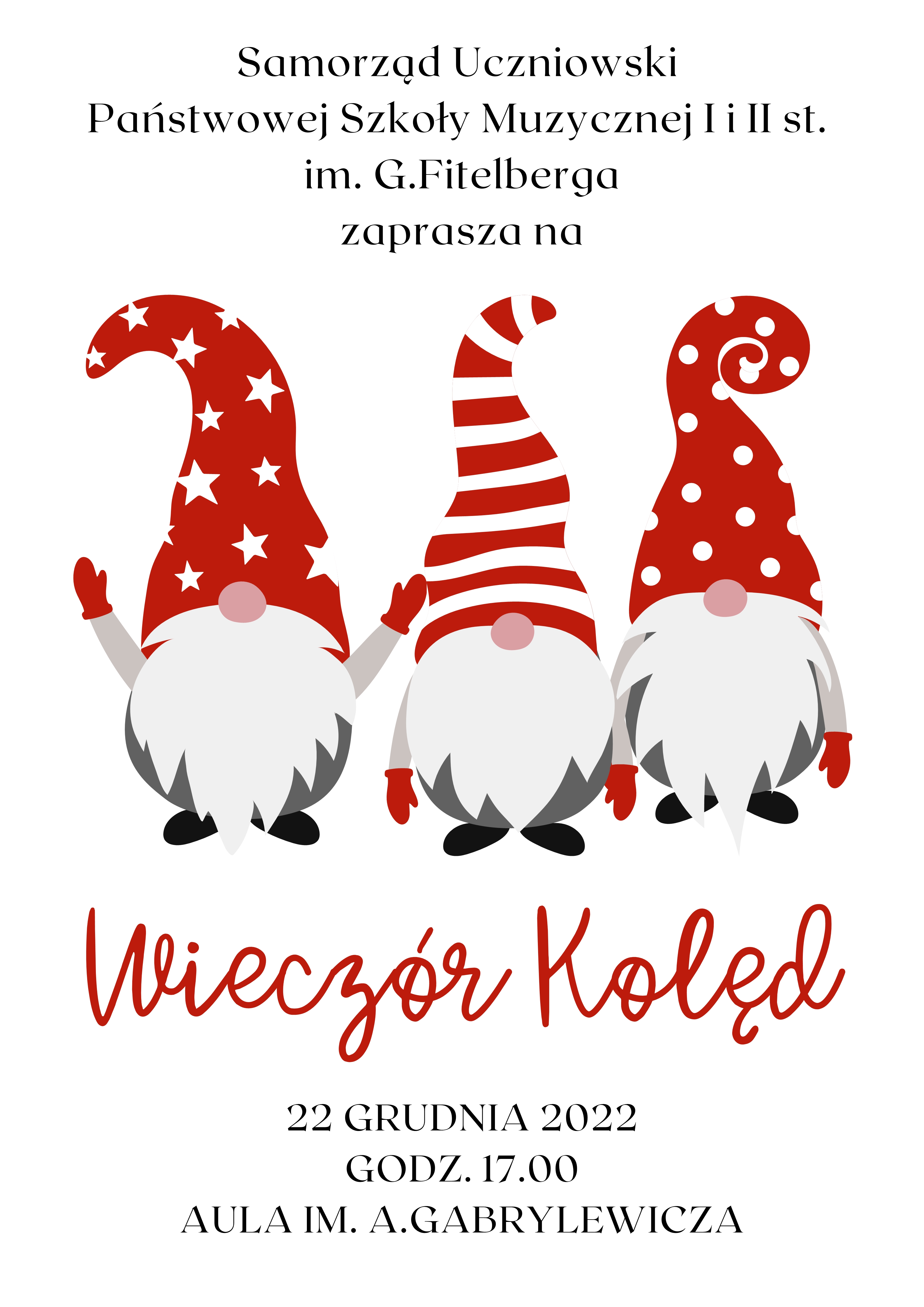 Samorząd Uczniowski pragnie zaprosić całą społeczność szkolną do wspólnego kolędowania podczas corocznego "Wieczoru kolęd", który odbędzie się w dniu 22 grudnia 2022 r. o godzinie 17.00 w Auli im. Aleksandra Gabrylewicza.