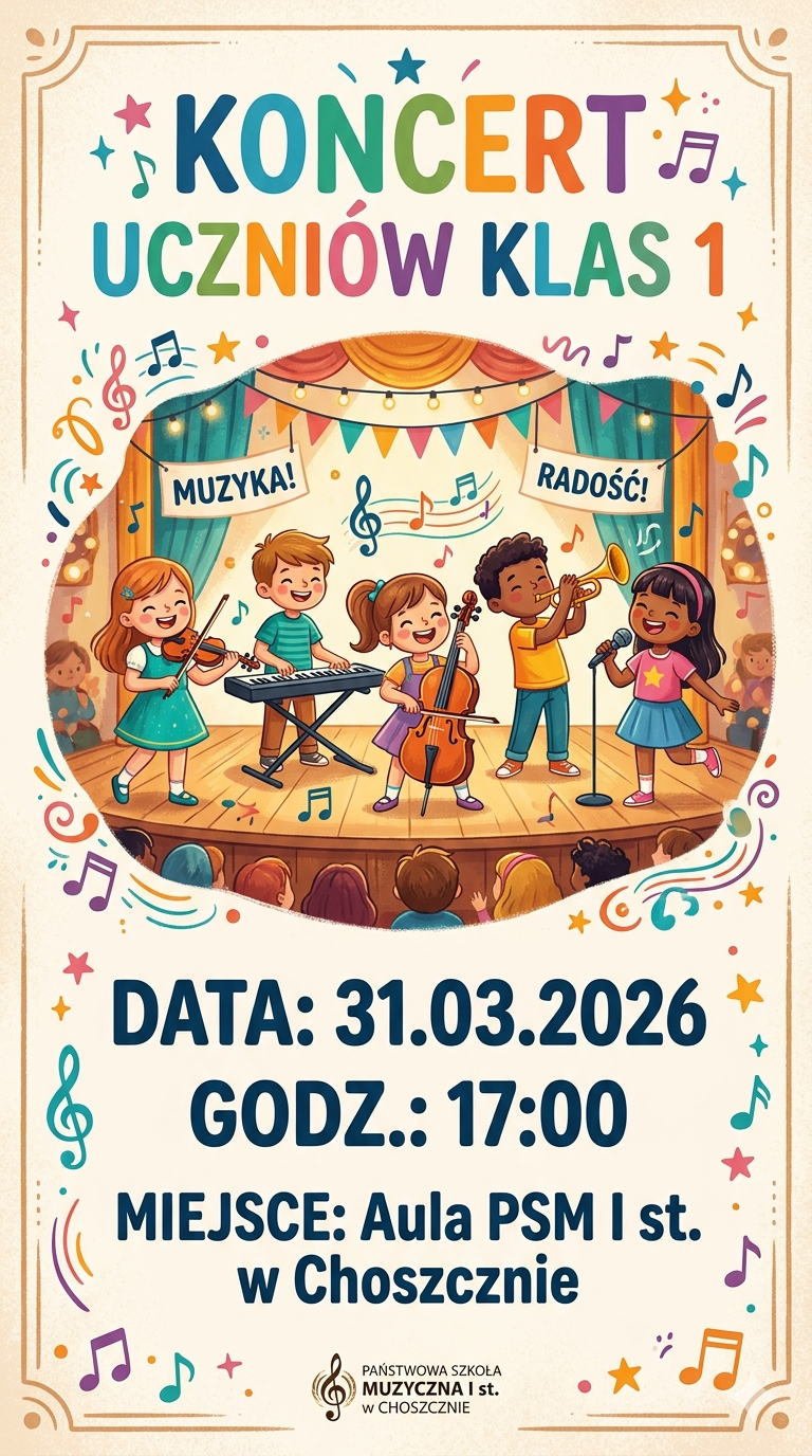 Koncert uczniów klas 1, 31 marca 2026 r., godz. 17:00 26.03.2026 Zdjęcia (1) Pokaż zdjęcie 1 z galerii.