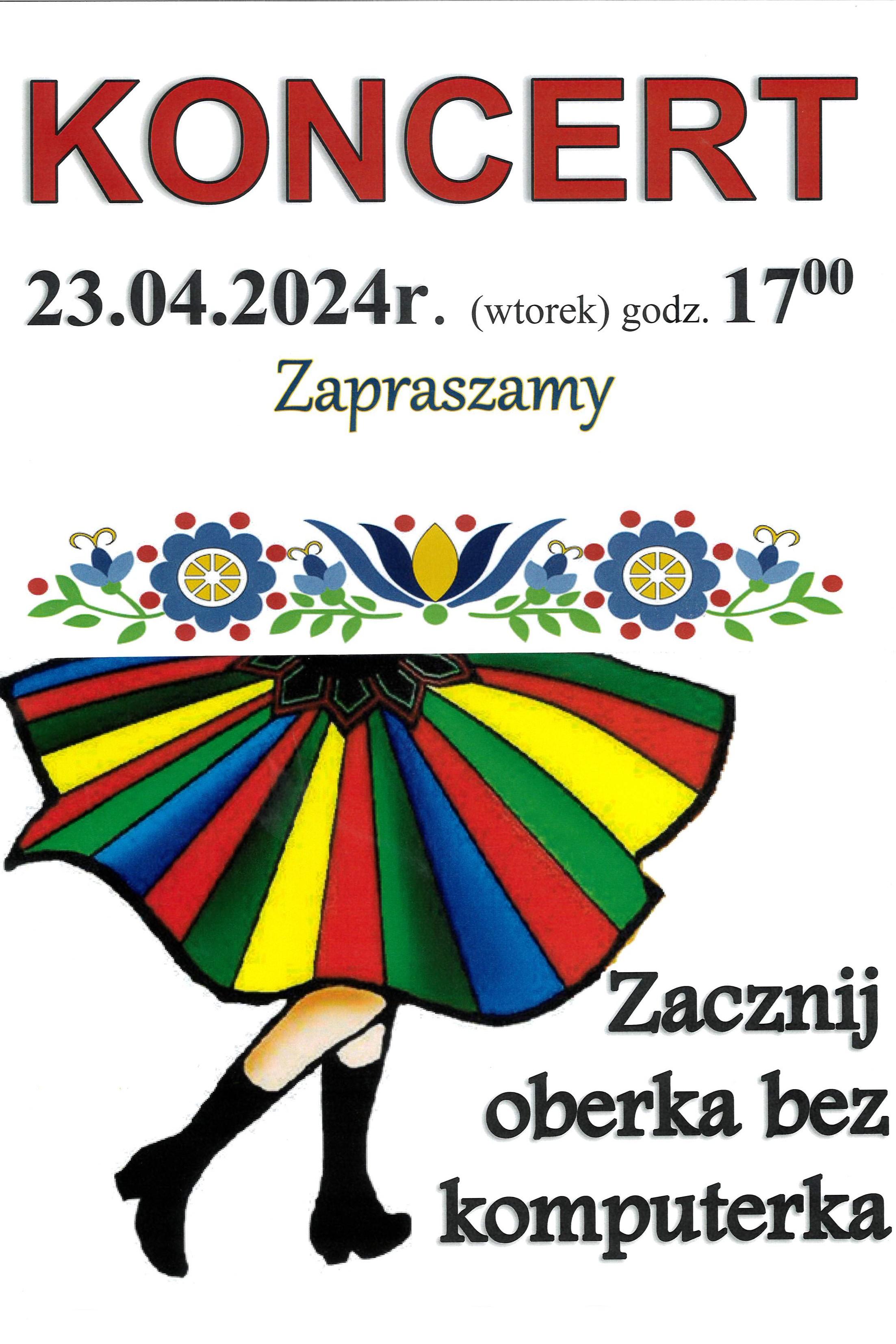 Koncert "Zacznij oberka bez komputerka", 23 kwietnia 2024 r., godz. 17:00 17.04.2024 Zapraszamy na koncert wiosenny. Zdjęcia (1) Pokaż zdjęcie 1 z galerii.