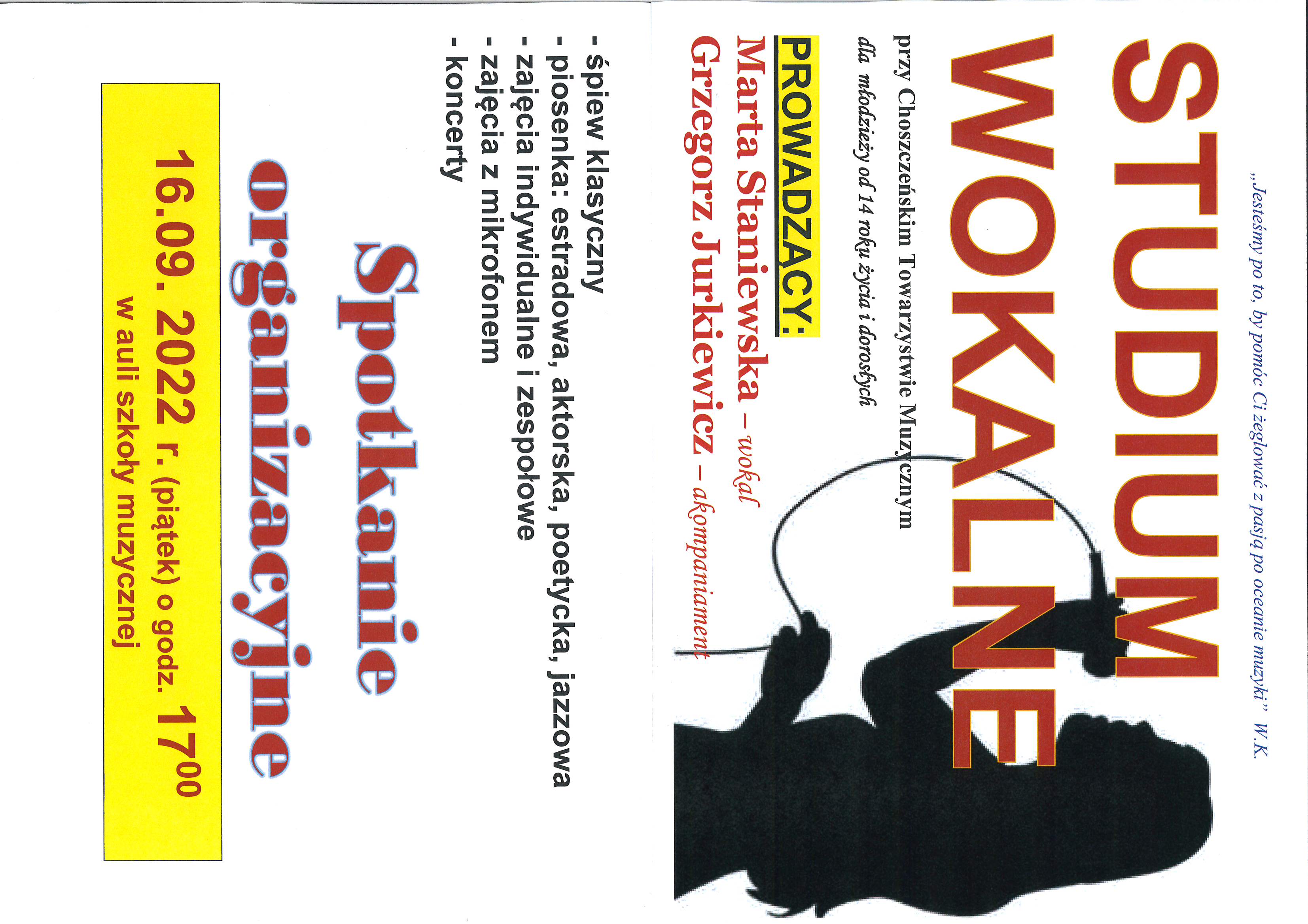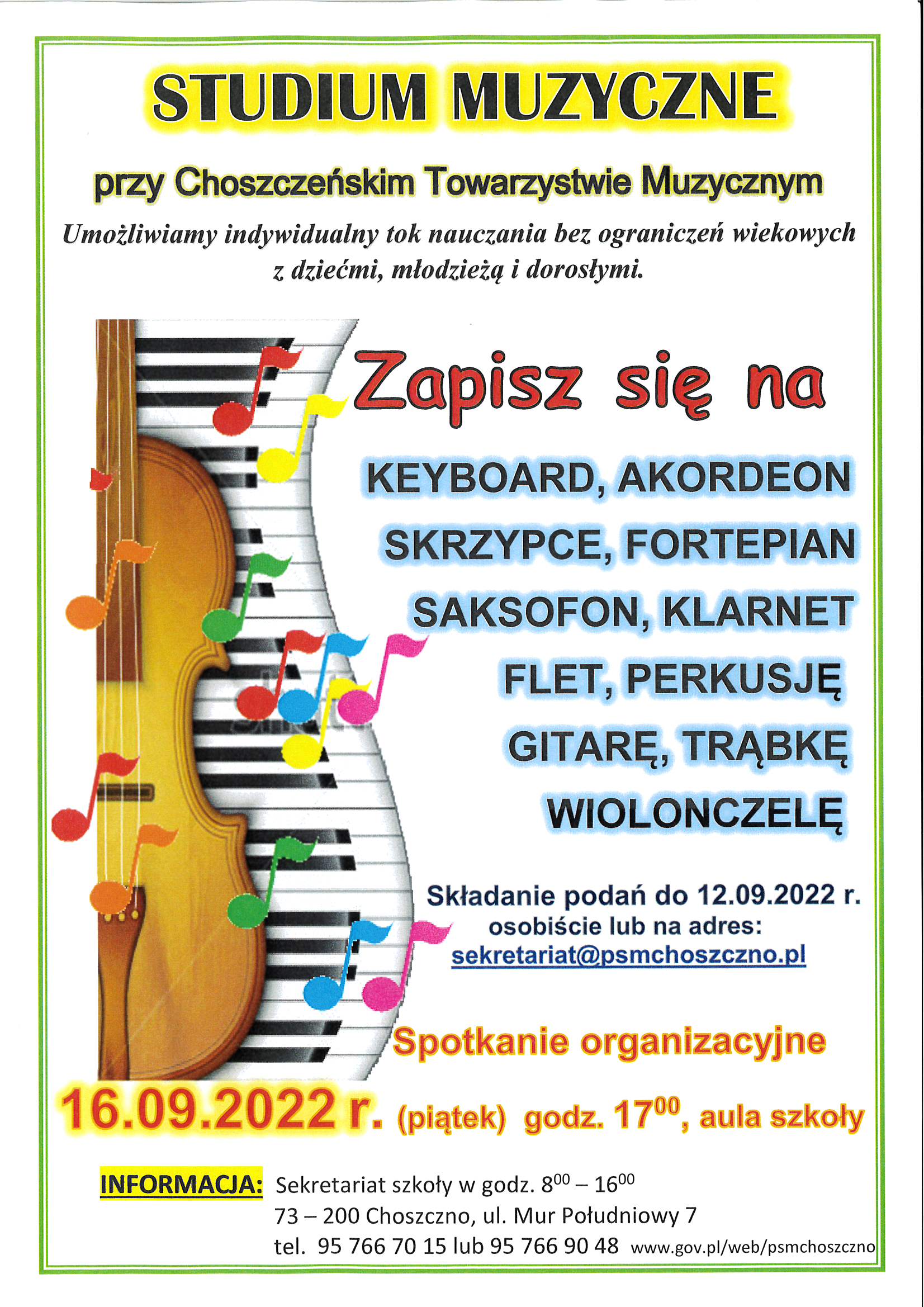 Rozpoczęcie roku szkolnego 2022/2023 i spotkanie organizacyjne w Studium muzycznym, Studium wokalnym i Studium plastycznym odbędzie się w piątek 16 września 2022 r. o godz. 17:00.
