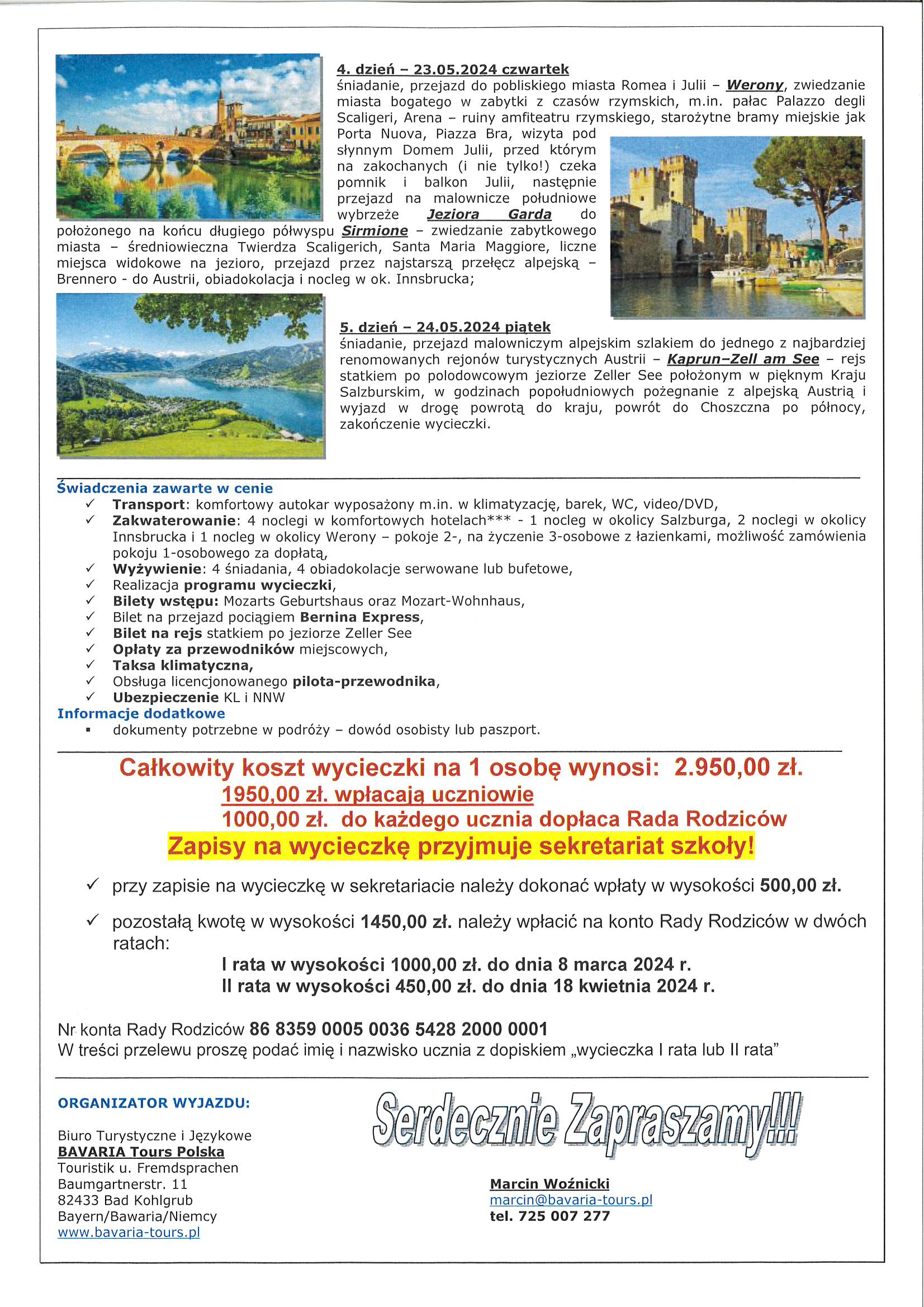 Poniżej znajduje się ramowy program oraz szczegóły organizacyjne wycieczki.