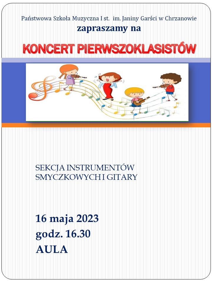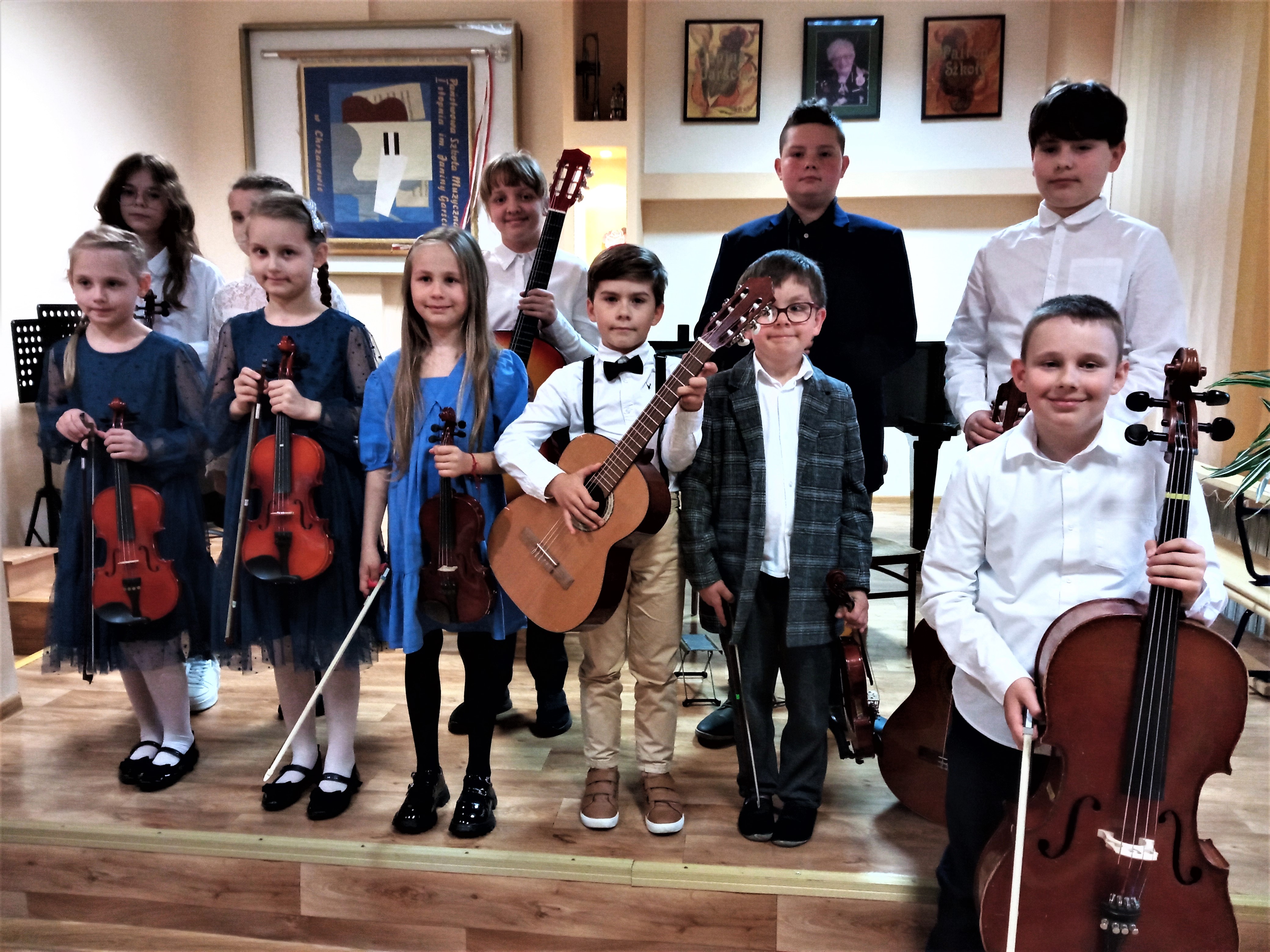 Sekcja instrumentów smyczkowych i gitary zaprasza na koncert w wykonaniu uczniów klas pierwszych.
