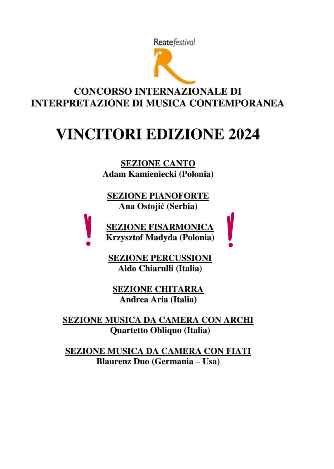 3 grudnia 2024 pan Madyda zagra na koncercie laureatów w auli Instytutu Goethego w Rzymie.
