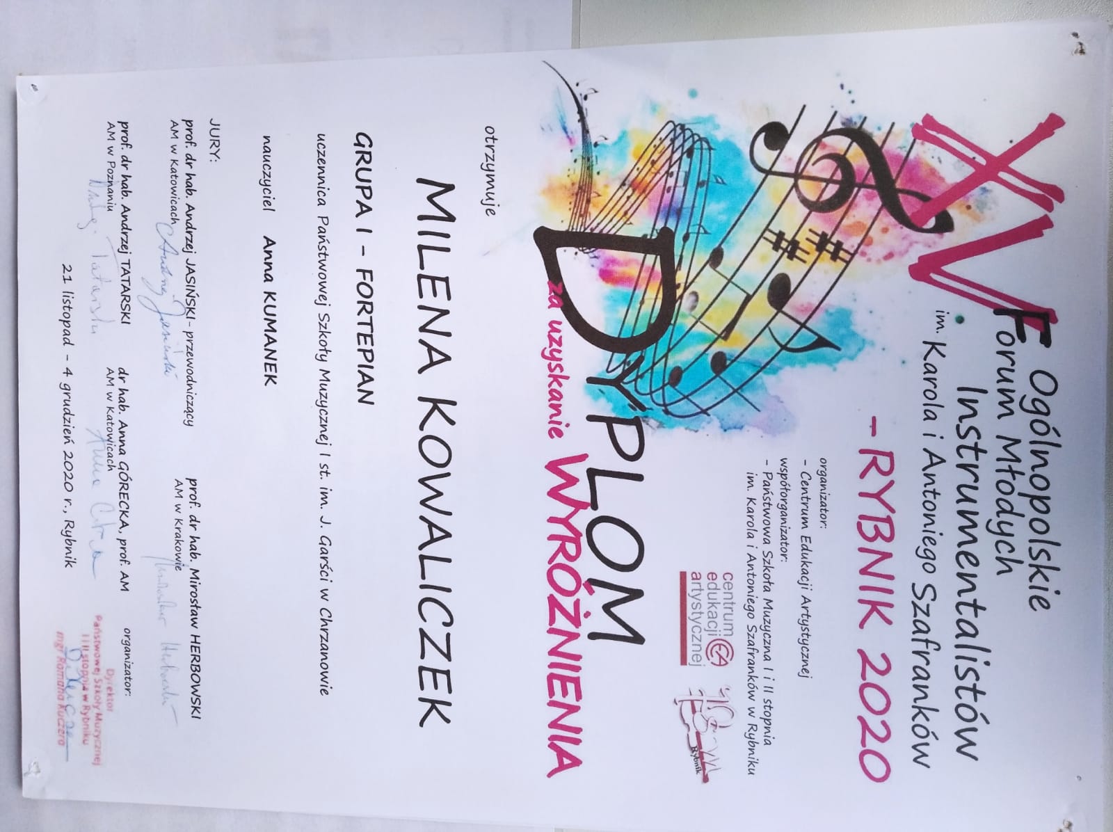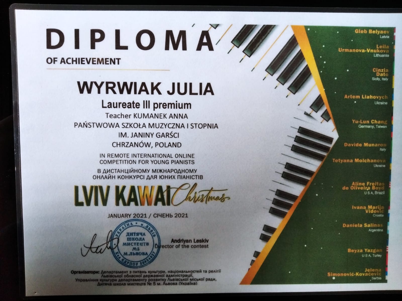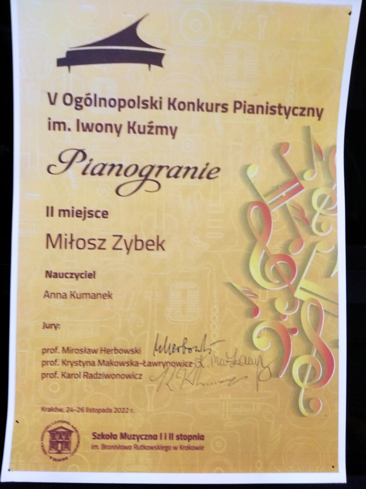 Uczniowie klasy fortepianu Anny Kumanek co roku biorą udział w różnych konkursach pianistycznych. Oto rezultaty ostatnich lat.