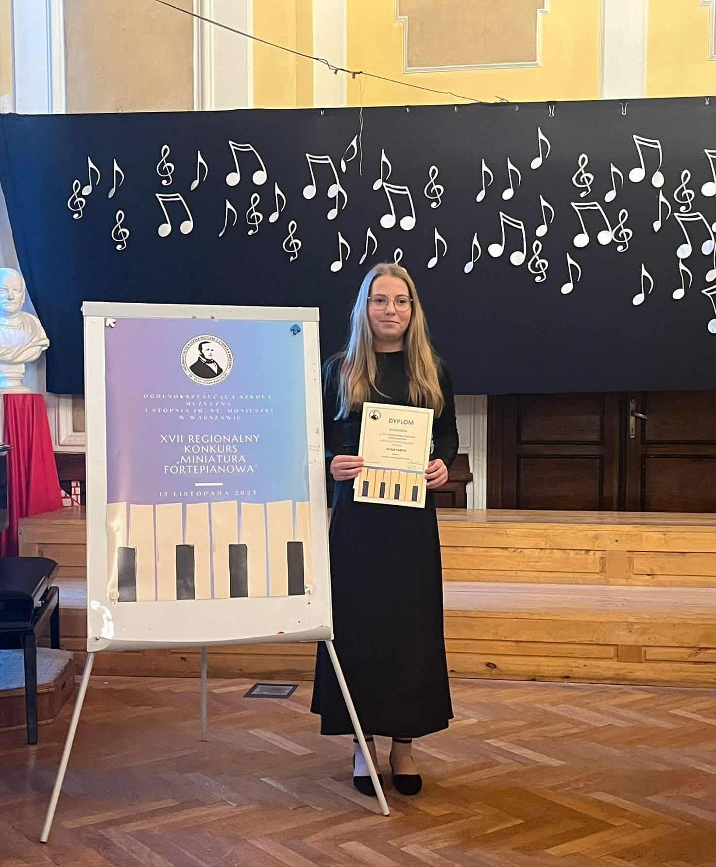 Miło nam poinformować o kolejnym sukcesie naszej uczennicy Alicji Pabich z klasy fortepianu Pani Tatiany Fedorczuk-Eichler. W minioną sobotę Alicja zdobyła III Nagrodę ( w III kat.) w XVII Regionalnym Konkursie „Miniatura fortepianowa” w Warszawie.