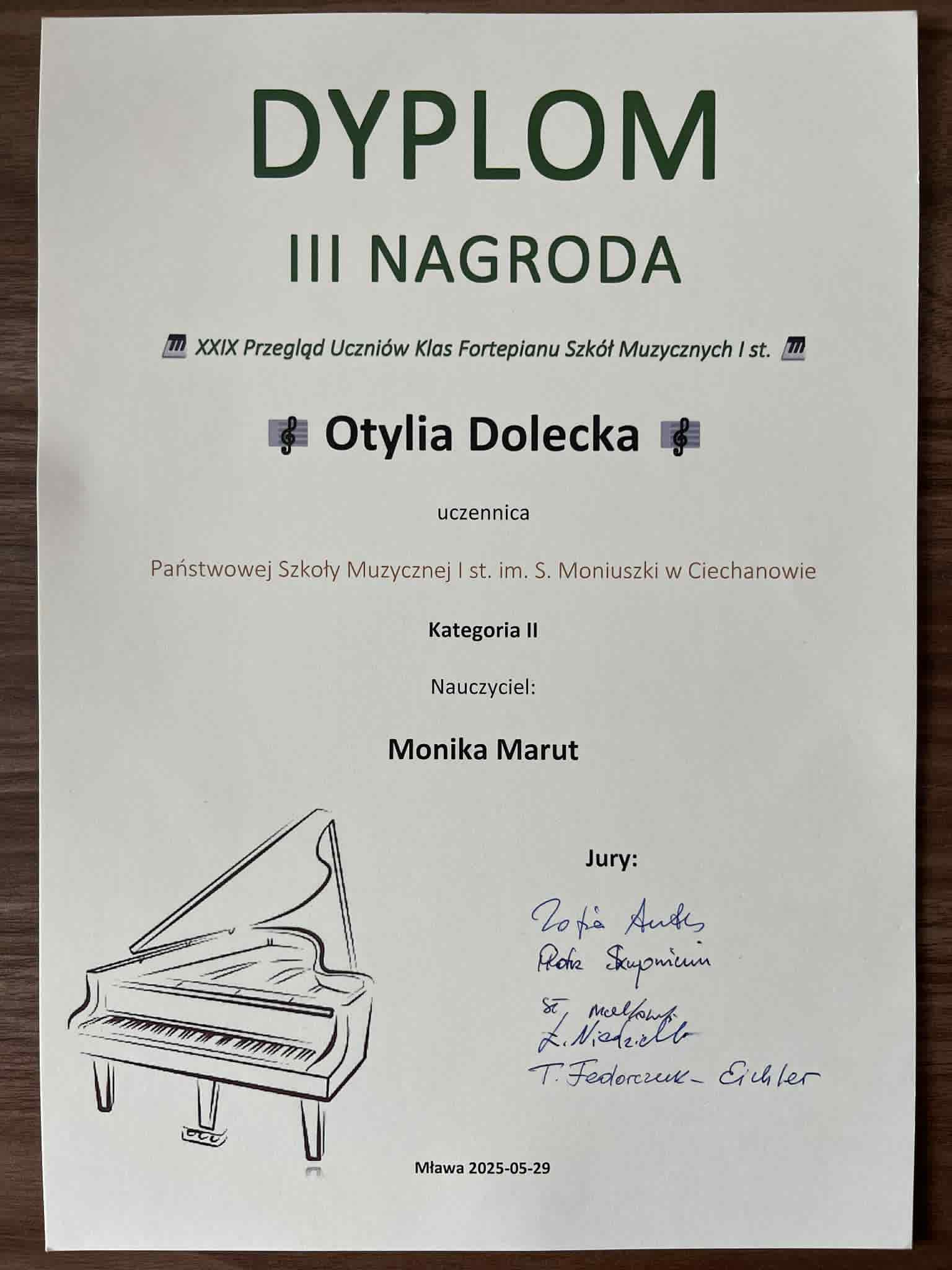 Nagrodzeni uczniowie na XXIX Przeglądzie Uczniów Klas Fortepianu w Mławie