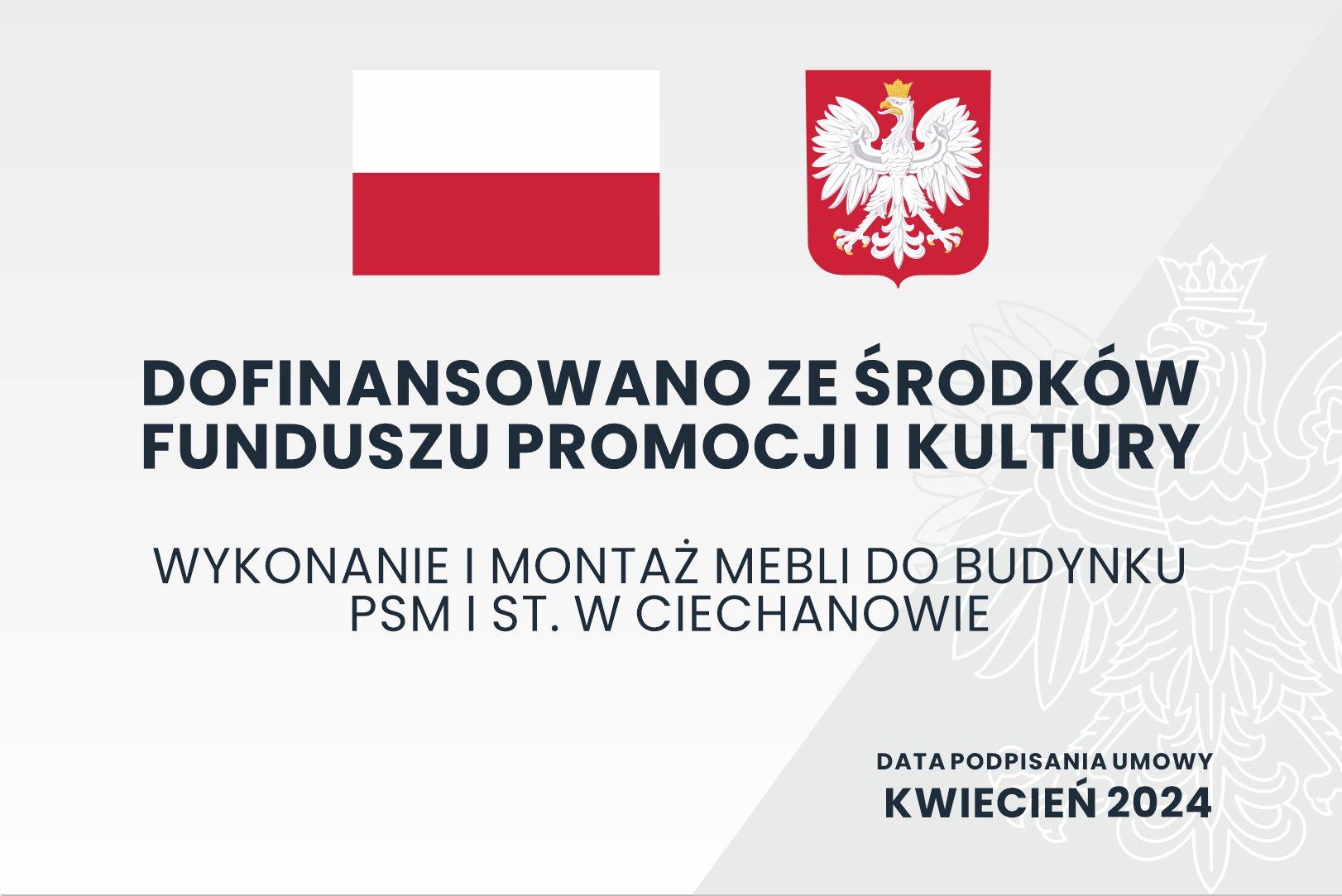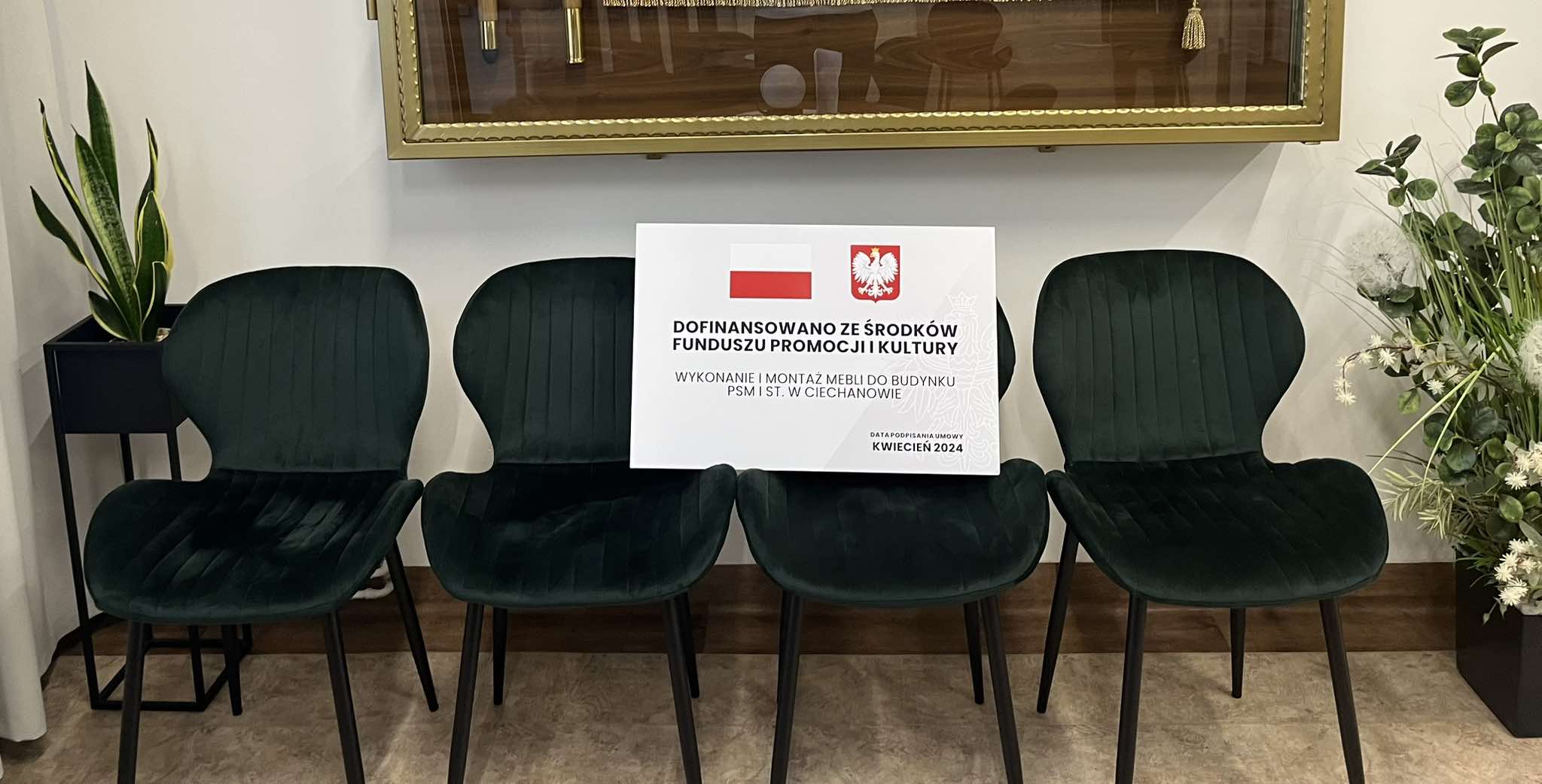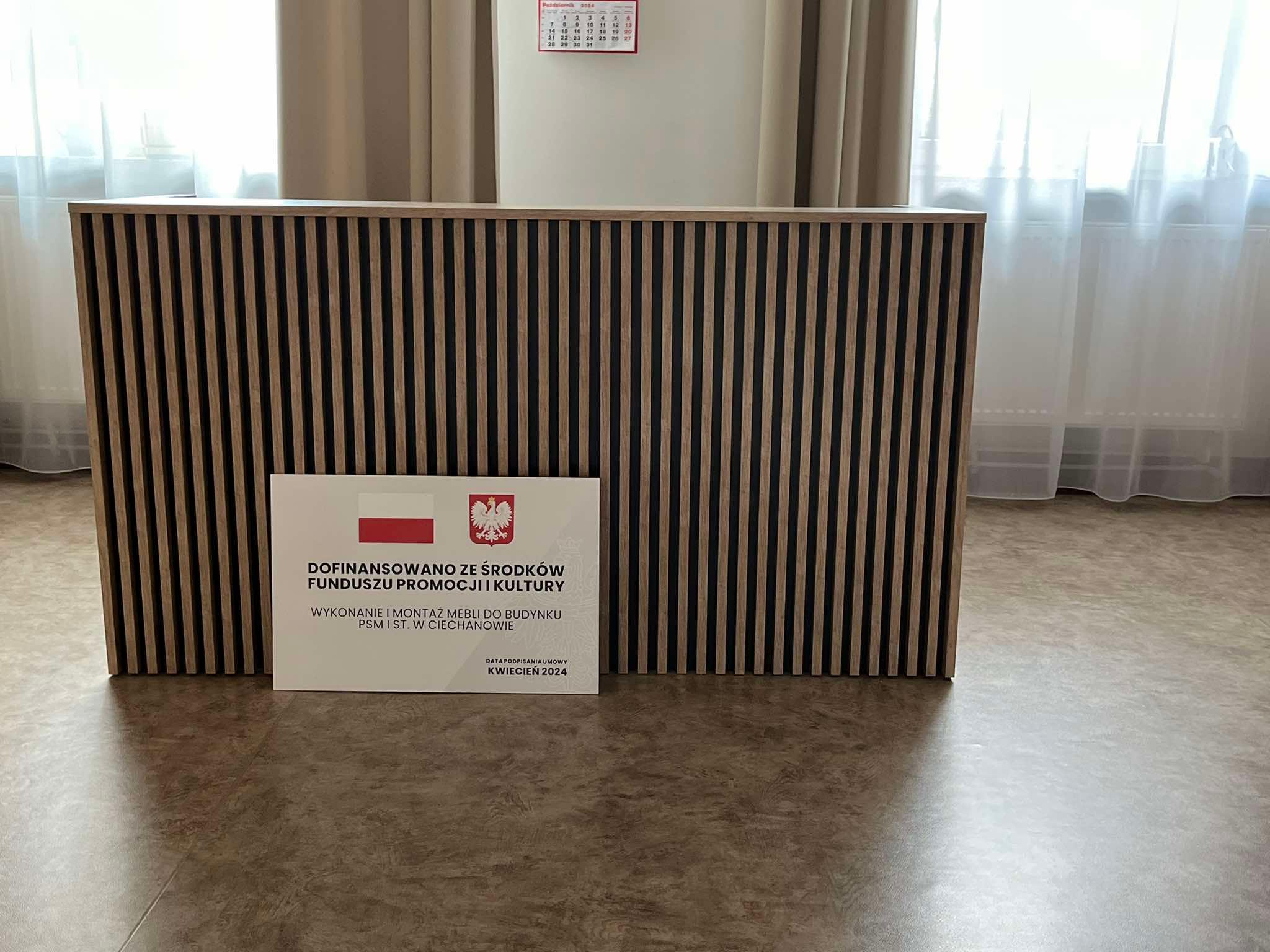 Wykonanie i montaż mebli do budynku PSM I st. w Ciechanowie dofinansowano ze środków Ministra Kultury i Dziedzictwa Narodowego pochodzących z Funduszu Promocji Kultury - państwowego funduszu celowego