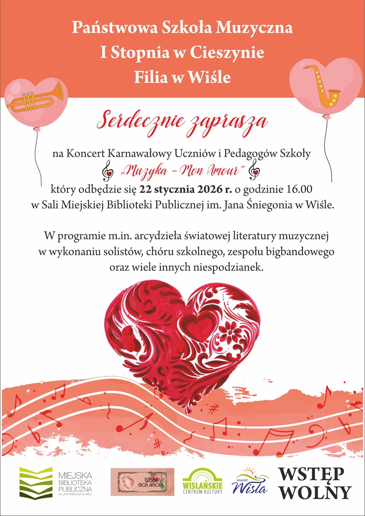 Państwowa Szkoła Muzyczna I stopnia w Cieszynie – Filia w Wiśle serdecznie zaprasza na Koncert Karnawałowy uczniów i pedagogów szkoły pod tytułem
