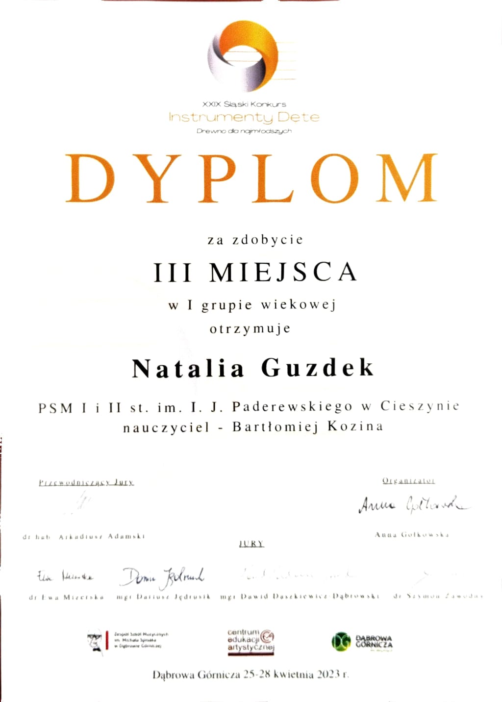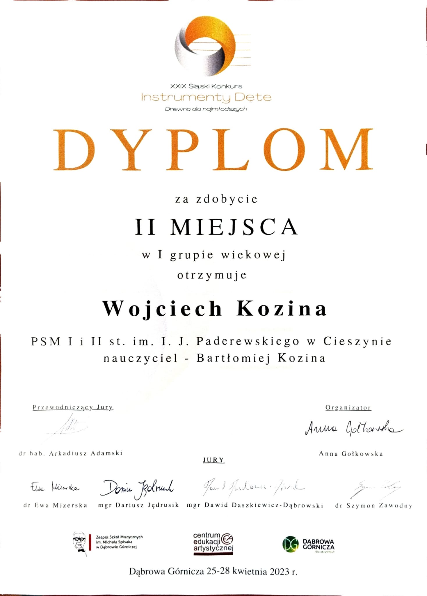 Wojciech Kozina oraz Natalia Guzdek z klasy klarnetu Bartłomieja Koziny zostali laureatami XXIX Śląskiego Konkursu w Dąbrowie Górniczej. Młodym klarnecistom towarzyszyła przy fortepianie Joanna Lipowczan-Stawarz.