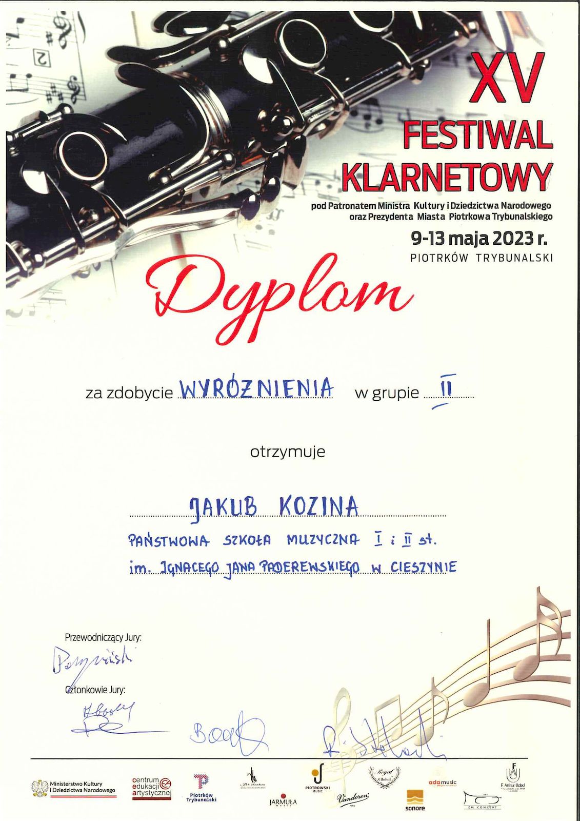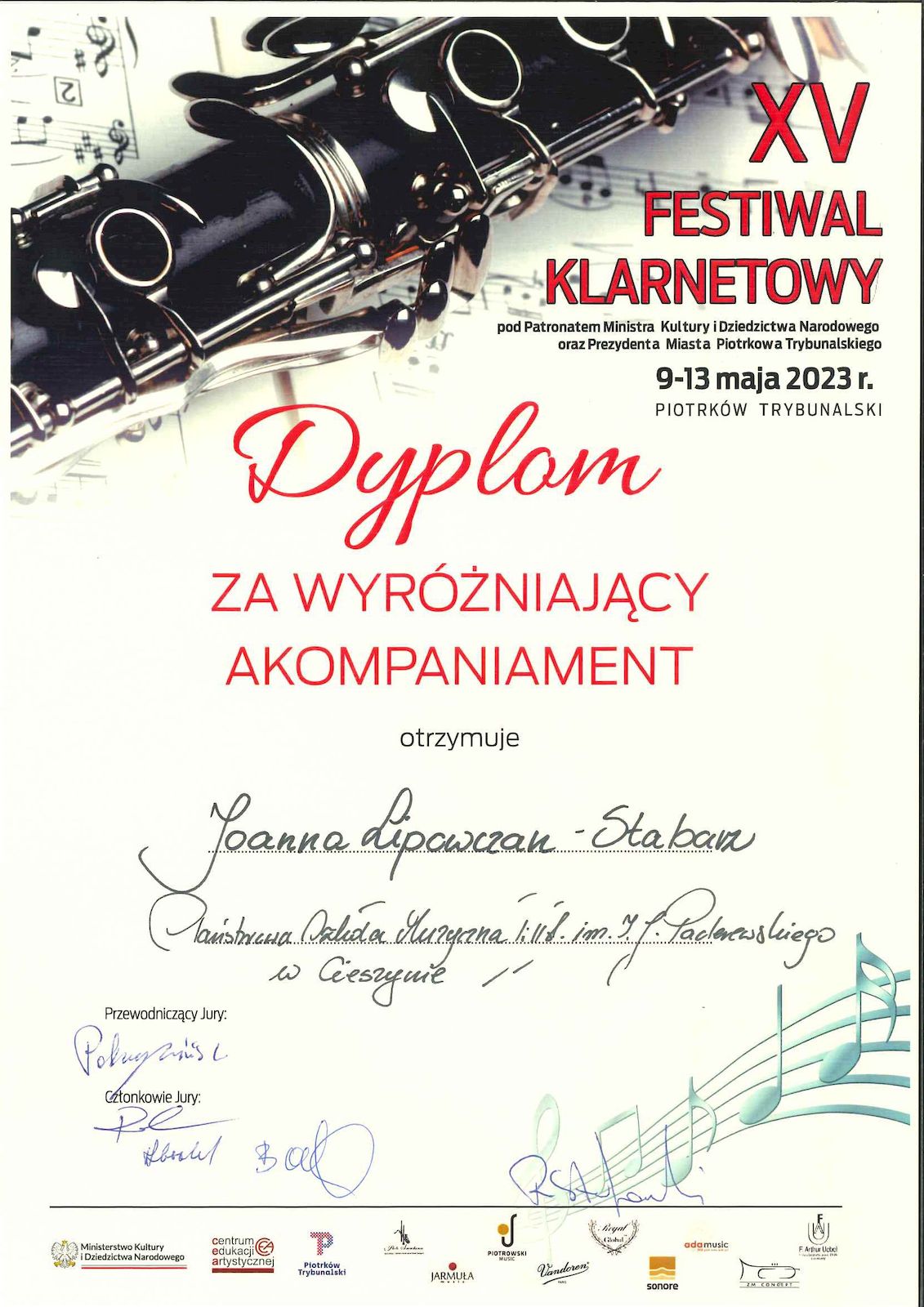 Natalia Guzdek została laureatem II miejsca na XV Ogólnopolskim Festiwalu Klarnetowym w Piotrkowie Trybunalskim. Jakub Kozina otrzymał wyróżnienie. Prezentacjom konkursowym towarzyszyła na fortepianie Joanna Lipowczan Stawarz, która również otrzymała dyplom za wyróżniający akompaniament.
