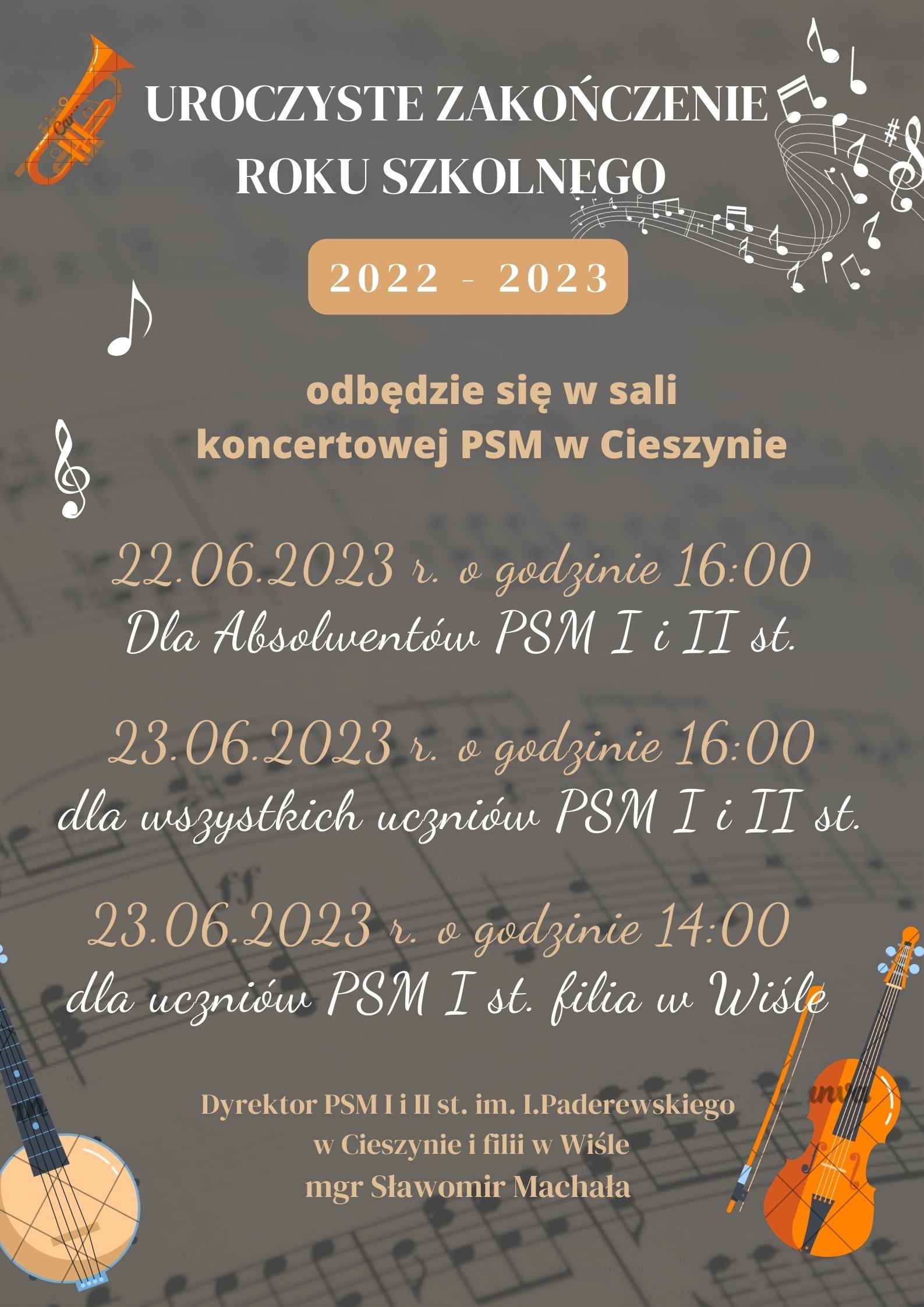 Uroczyste zakończenie Roku Szkolnego 202/2023 odbędzie się w sali koncertowej PSM w Cieszynie