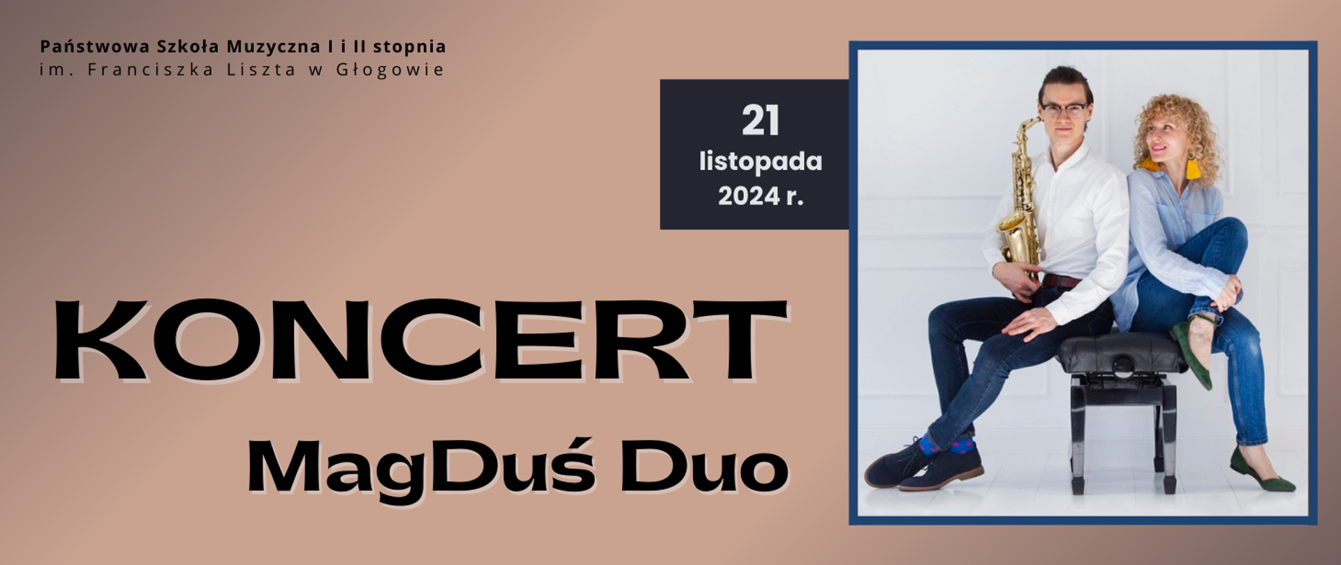 Zapraszamy na koncert, który będzie zwieńczeniem całodniowych warsztatów w klasach fortepianu i saksofonu. Zespół "MagDuś Duo" tworzą Bartłomiej Duś - saksofon oraz Magdalena Duś - fortepian