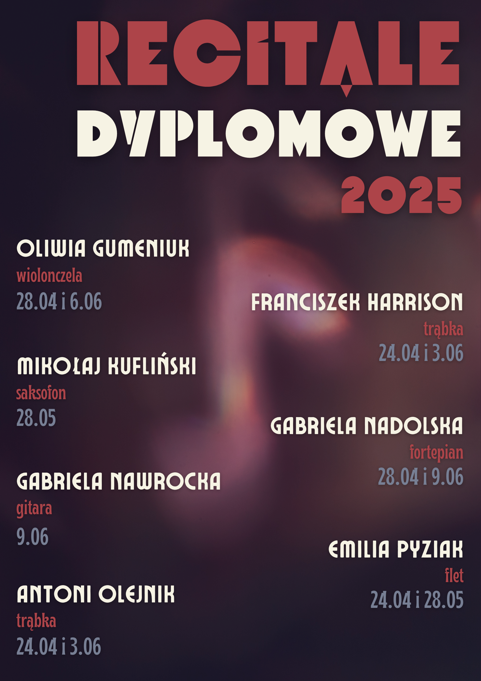 Zapraszamy na recitale dyplomowe uczniów klasy fletu i trąbki