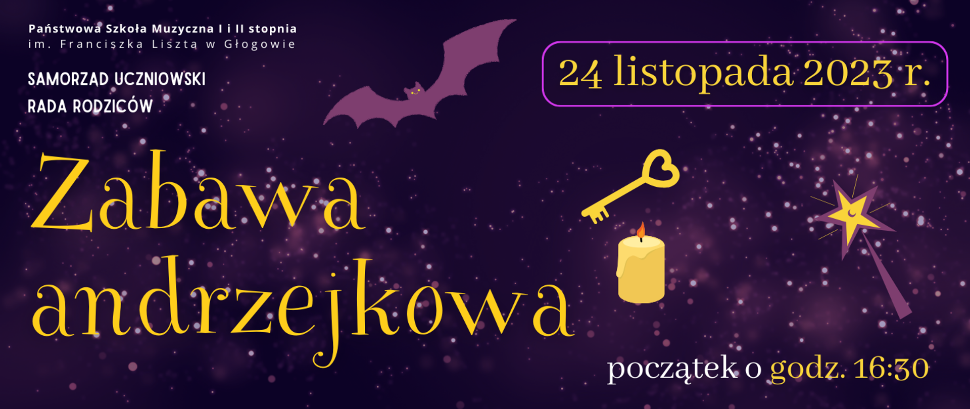 Samorząd uczniowski oraz rada rodziców zapraszają wszystkich uczniów na zabawę andrzejkową.