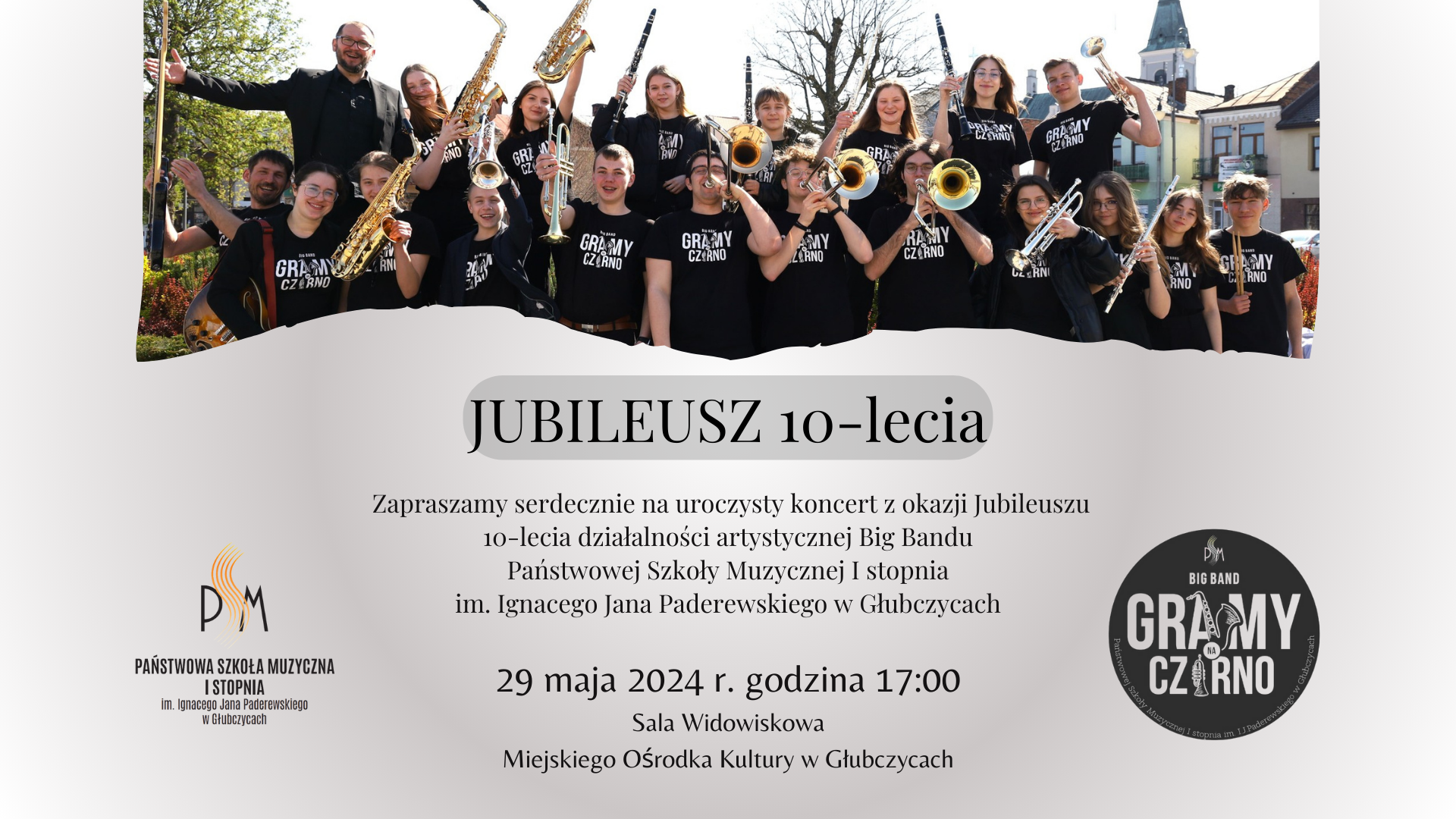 Jubileusz 10-lecia pracy artystycznej Big Bandu Państwowej Szkoły Muzycznej I stopnia im Ignacego Jana Paderewskiego w Głubczycach - 29 maja 2024 r. godzina 17:00