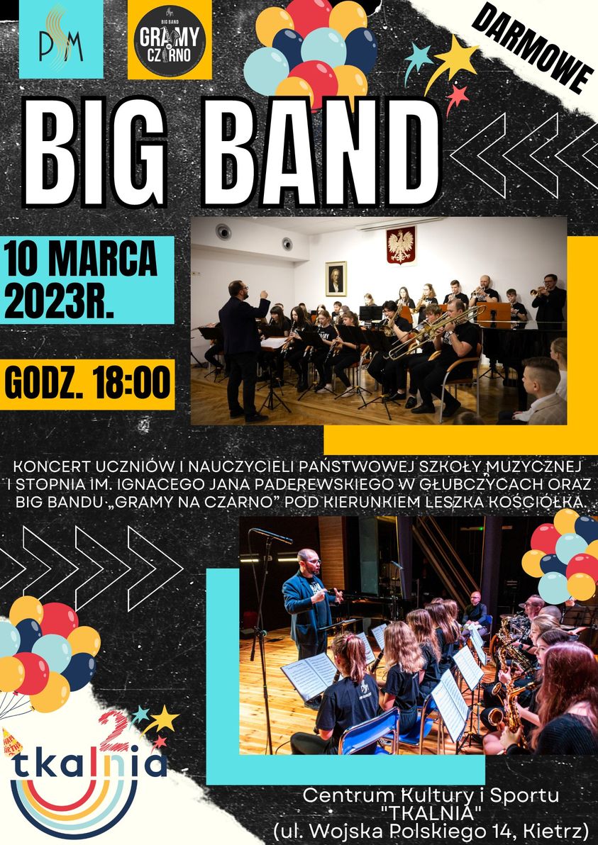 Koncert uczniów i nauczycieli Państwowej Szkoły Muzycznej I stopnia im. I.J.Paderewskiego w Głubczycach oraz Big Bandu "Gramy na czarno" w Centrum Kultury i Sportu "TKALNIA" w Kietrzu