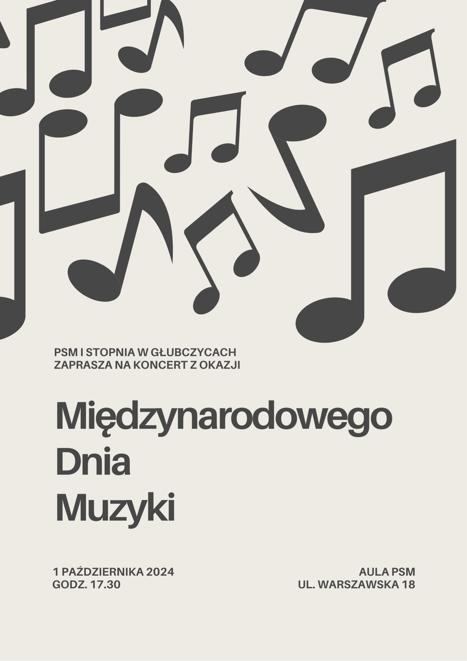 Koncert z okazji Międzynarodowego Dnia Muzyki - 1 października 2024 godzina 17:30 aula PSM