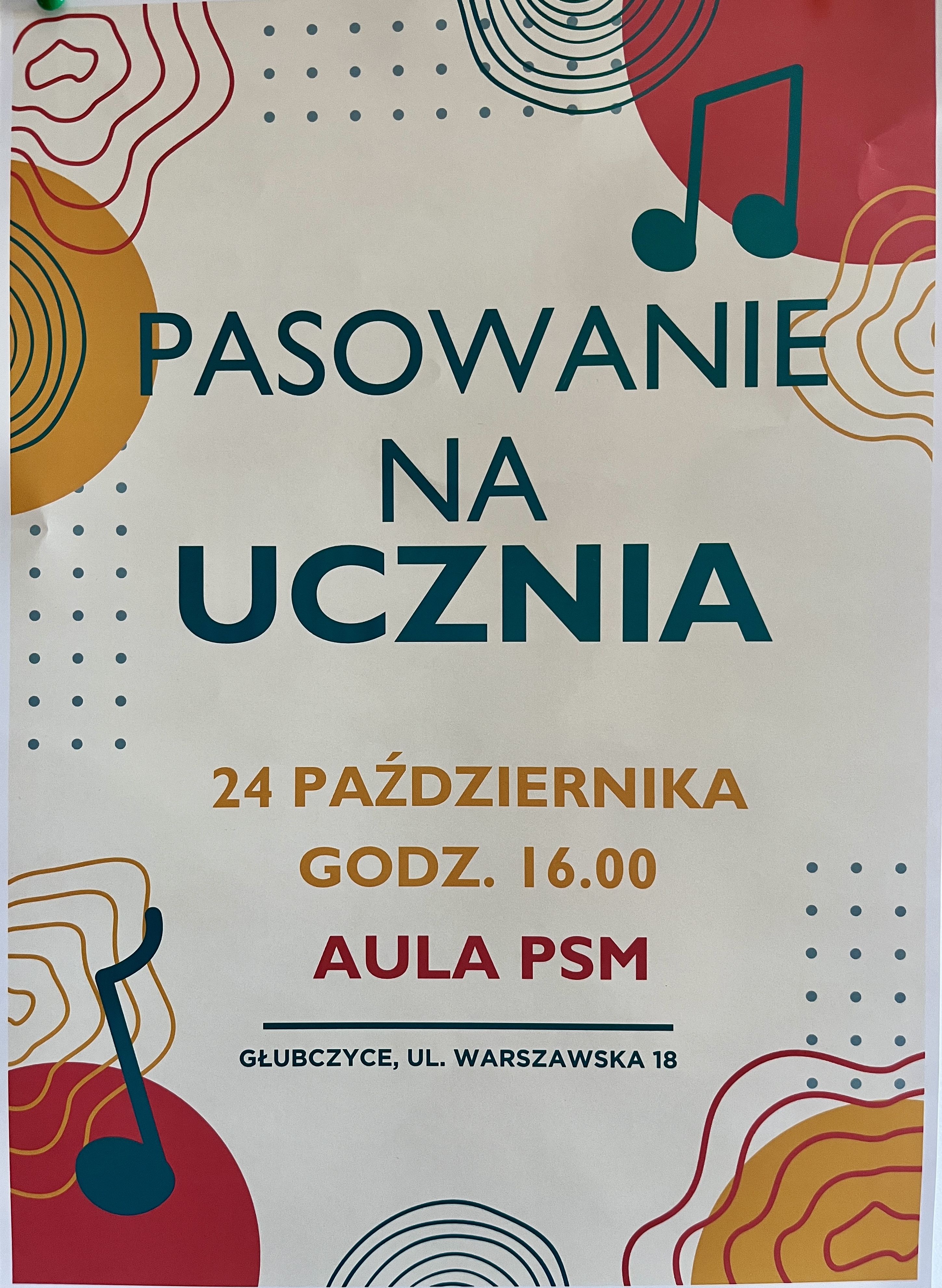 Pasowanie na ucznia 24 października godzina 16:00 aula PSM w Głubczycach