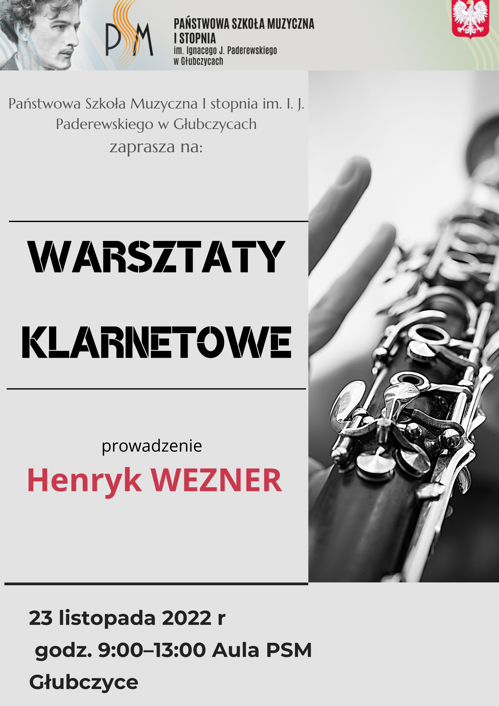 Warsztaty klarnetowe dla uczniów klasy klarnetu. Prowadzenie Pan Henryk Wezner.