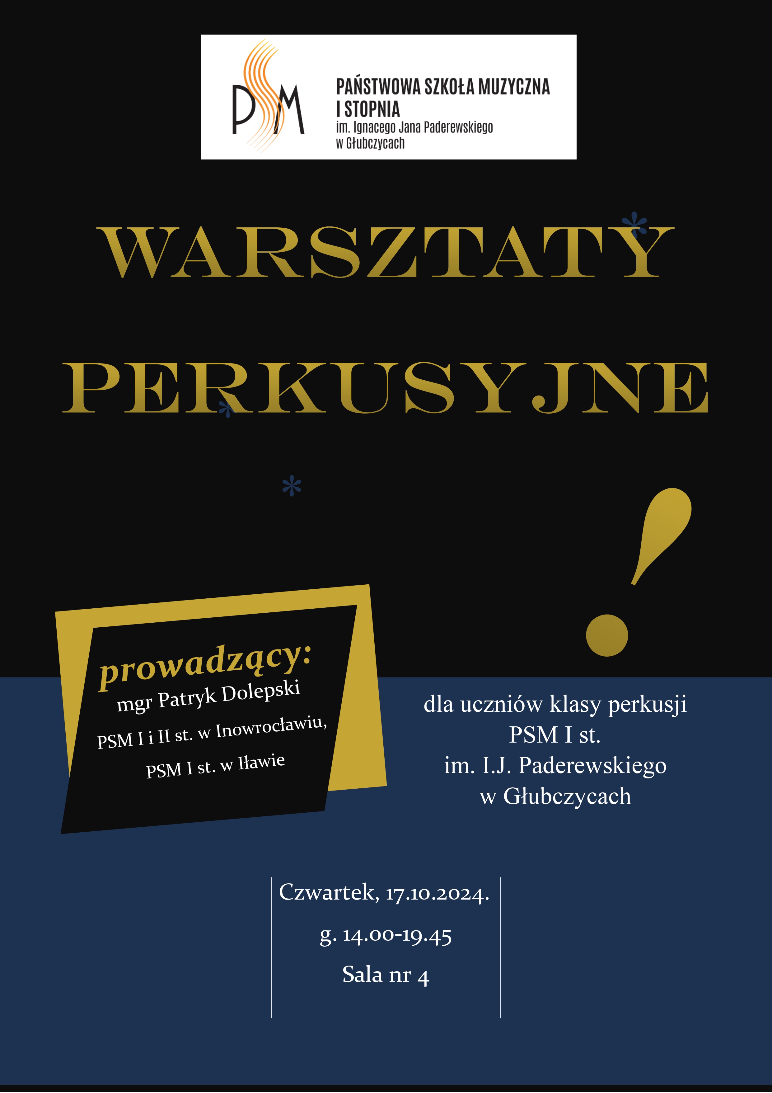 Warsztaty perkusyjne - 17 października 2024 r - prowadzenie mgr Patryk Dolepski