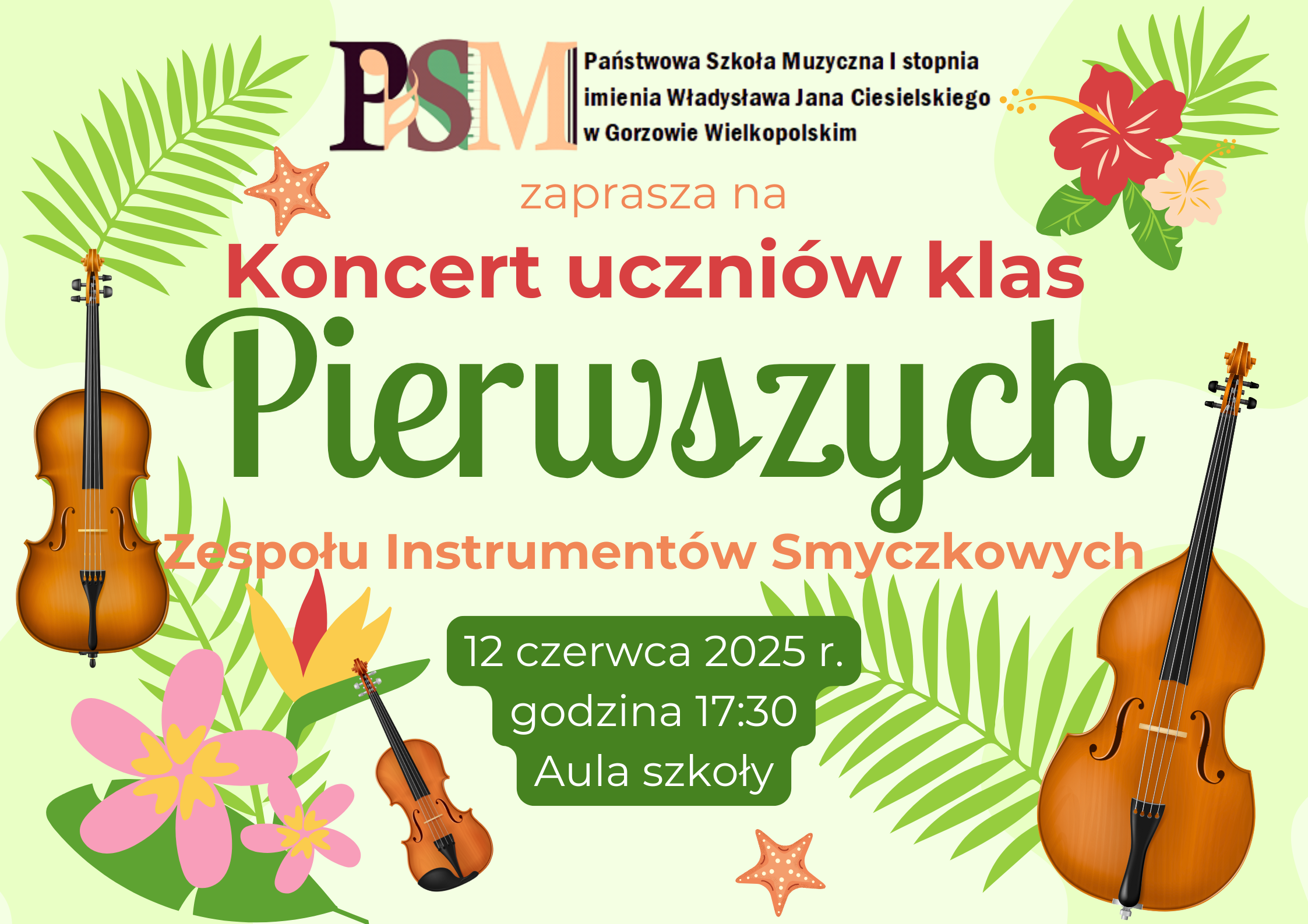 zdjęcie przedstawia zaproszenie na koncert uczniów klas pierwszych zespołu instrumentów smyczkowych