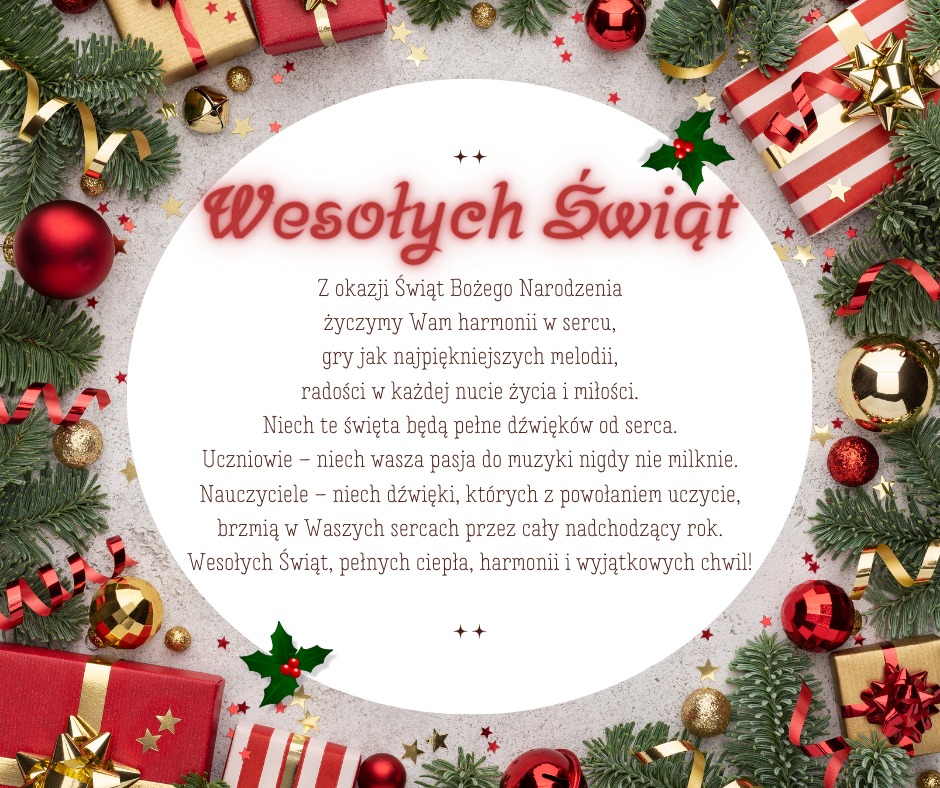 Najserdeczniejsze życzenia z okazji nadchodzących Świąt - aby był to czas w ciepłym gronie rodzinnym, pełnym radości i pięknych kolęd w różnorakim wydaniu.
