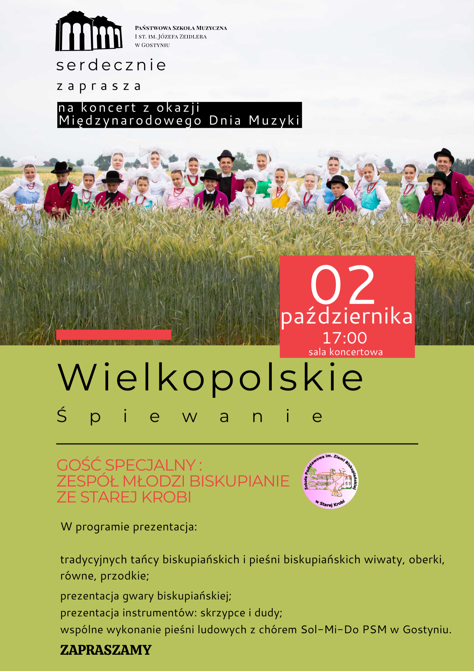 Dźwięki ludowych instrumentów muzycznych oraz wspólne wykonanie kanonu „Panie Janie” na trzy głosy można było usłyszeć w sali koncertowej Państwowej Szkoły Muzycznej w Gostyniu. 2 października odbył się tam koncert pn. „Wielkopolskie Śpiewanie”. Było nieco inaczej niż zwykle.