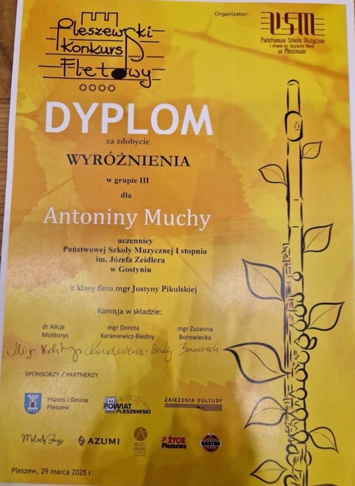 Pleszewski Konkurs Fletowy z wyróżnieniem dla Antosi!!!