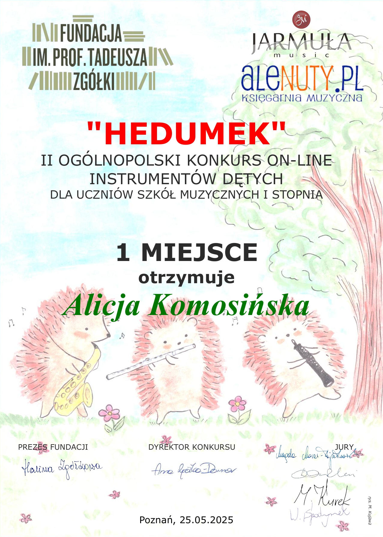 Alicja Komosińska - I miejsce w II Ogólnopolskim Konkursie Online Instrumentów Dętych "Hedumek" - 25 maja 2025