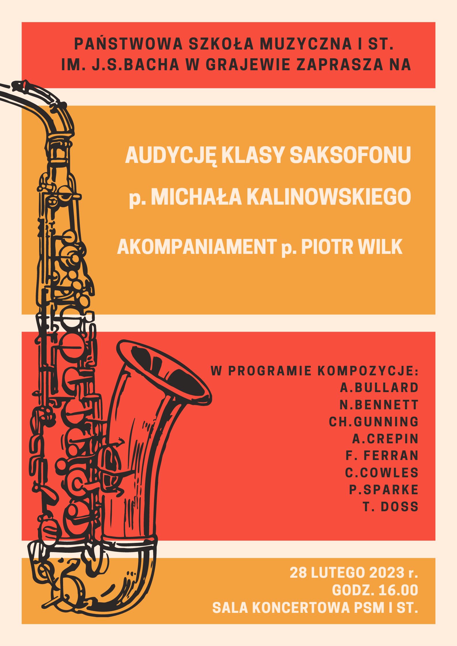 Zapraszamy na audycję klasy saksofonu p. Michała Kalinowskiego