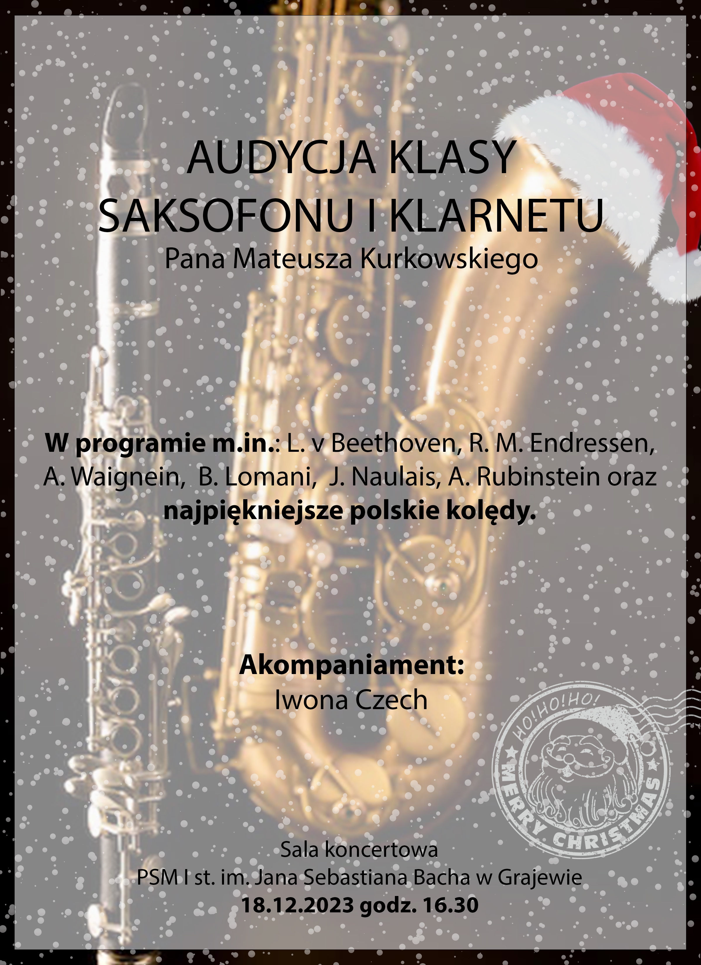 Audycja klasy saksofonu i klarnetu p. Mateusza Kurkowskiego-18 grudnia 2023r.