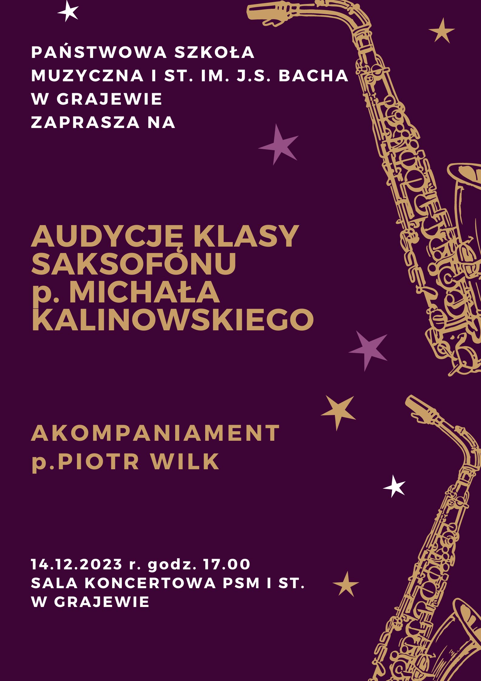 Audycja klasy saksofonu p. Michała Kalinowskiego-14 grudnia 2023r.