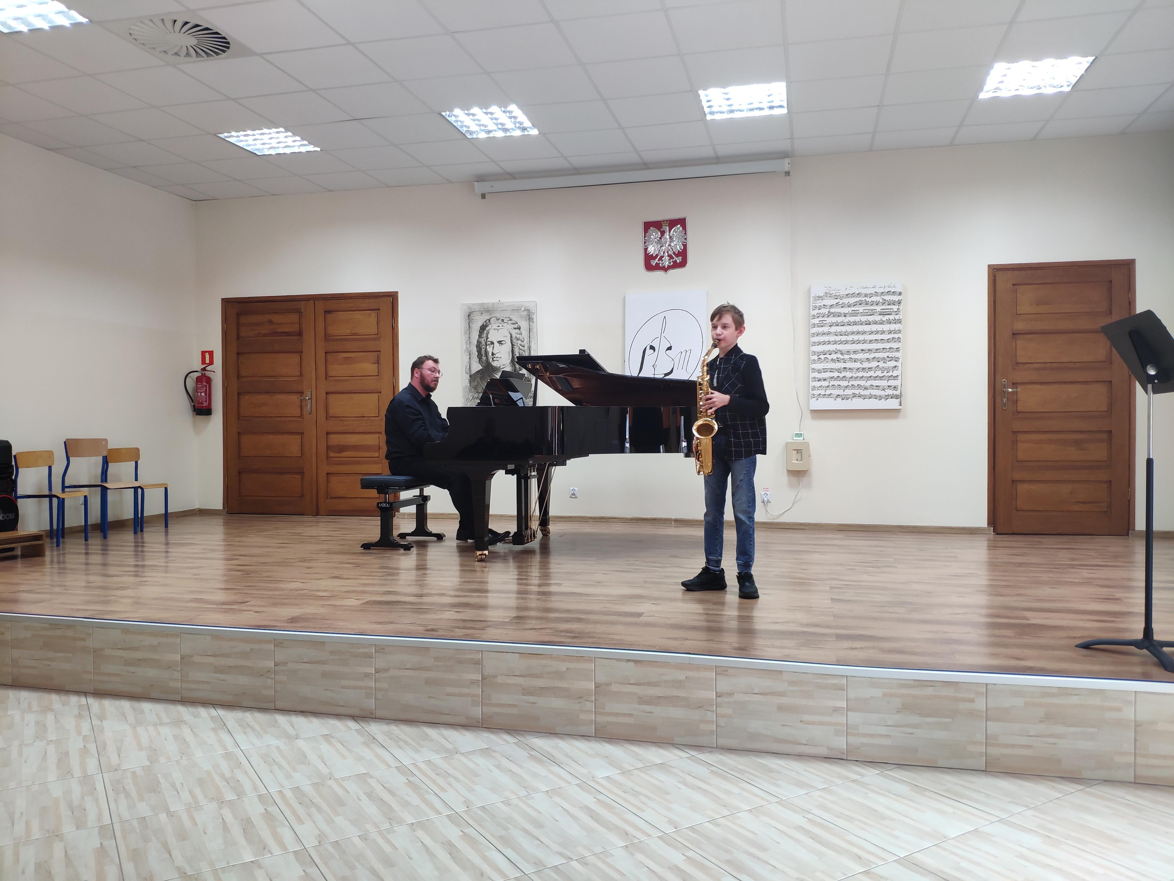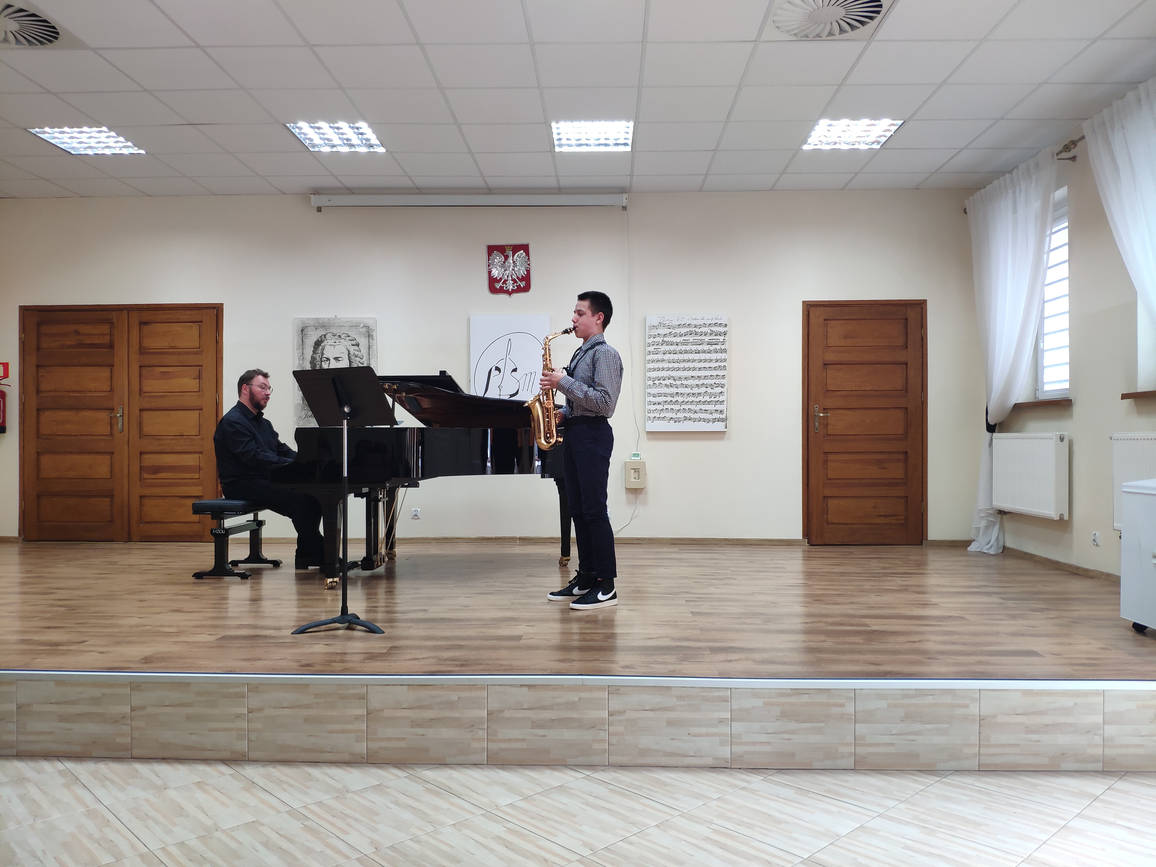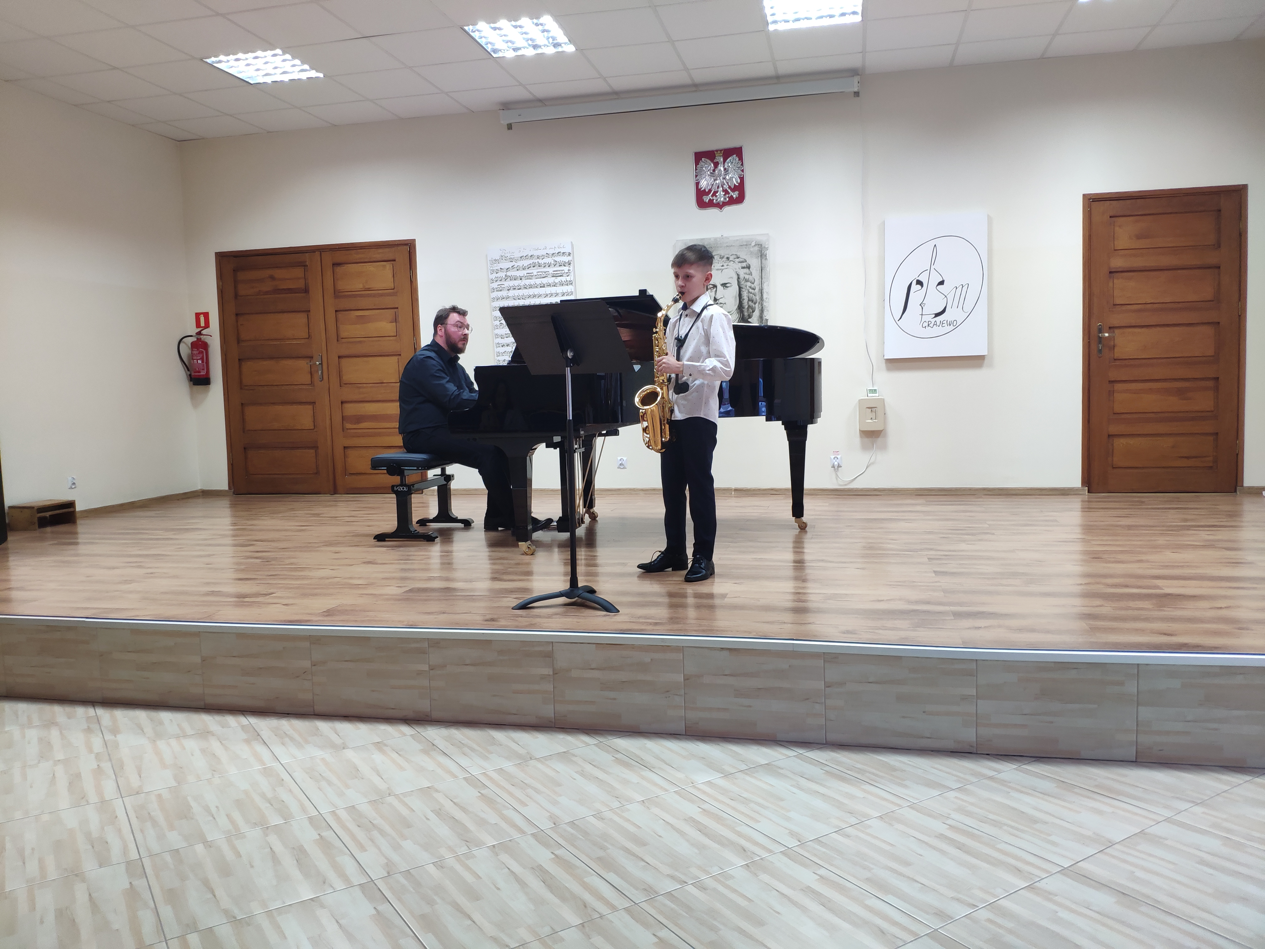 Audycja klasy saksofonu p. Michała Kalinowskiego. Przy fortepianie p. Piotr Wilk