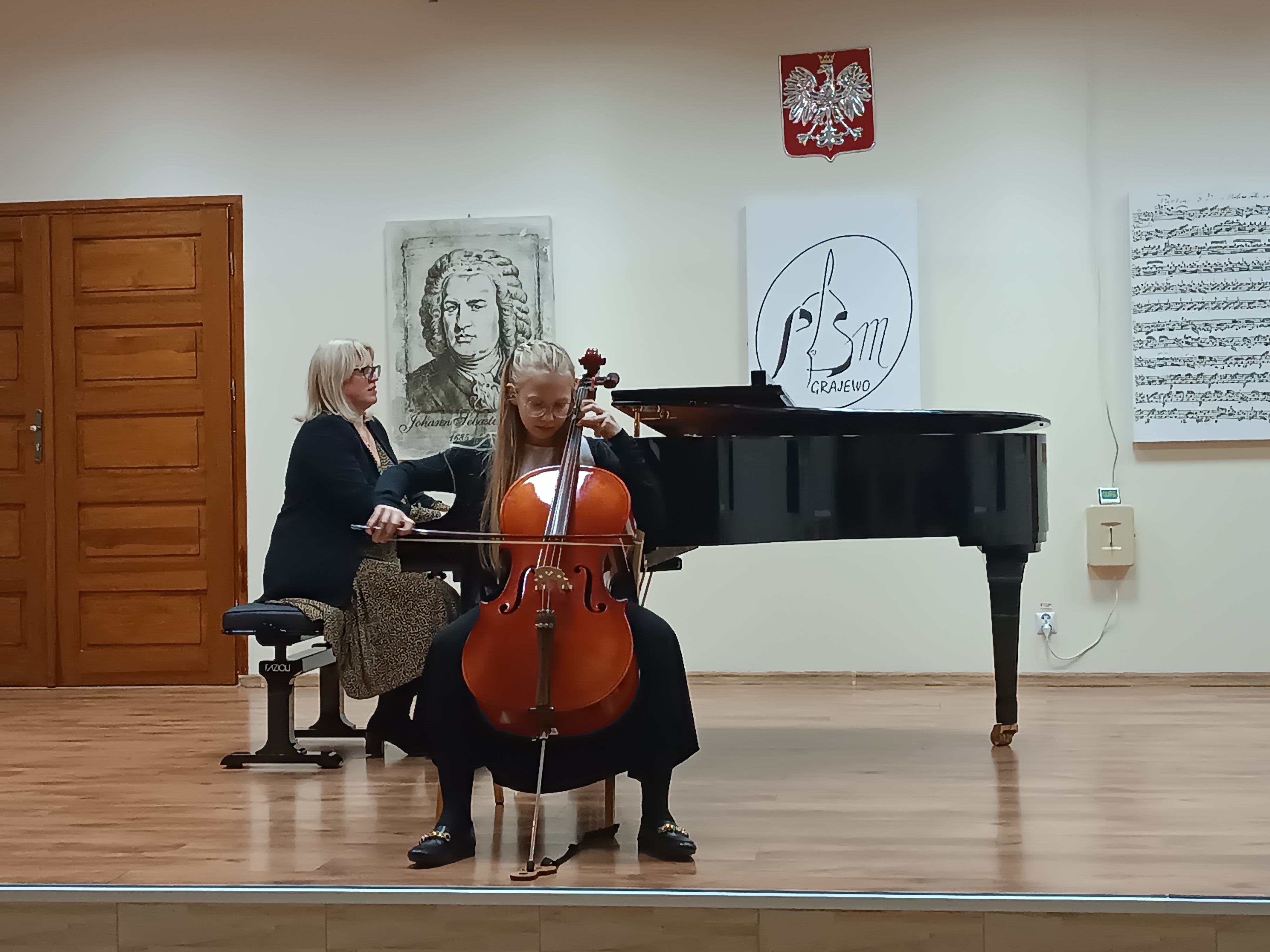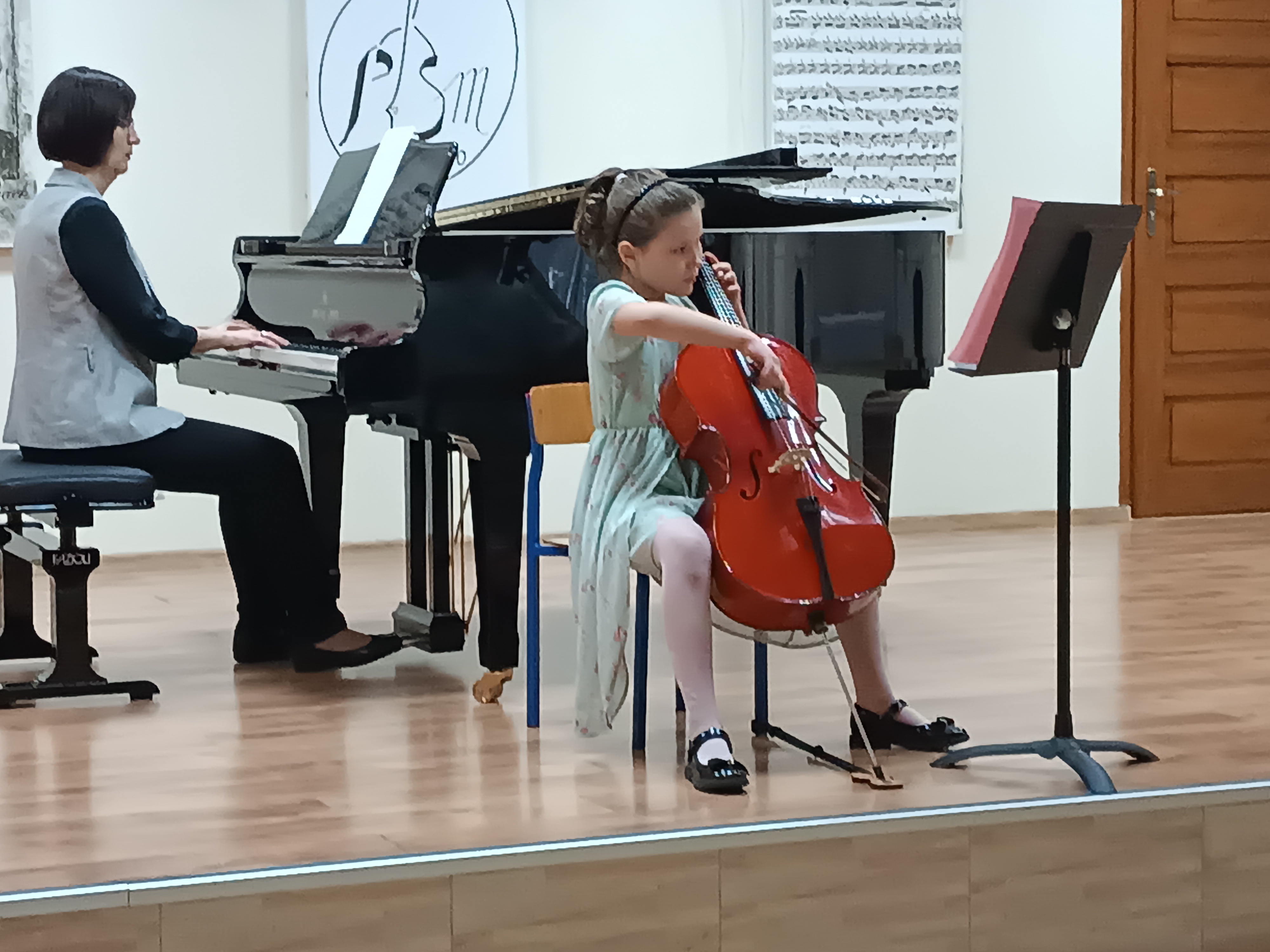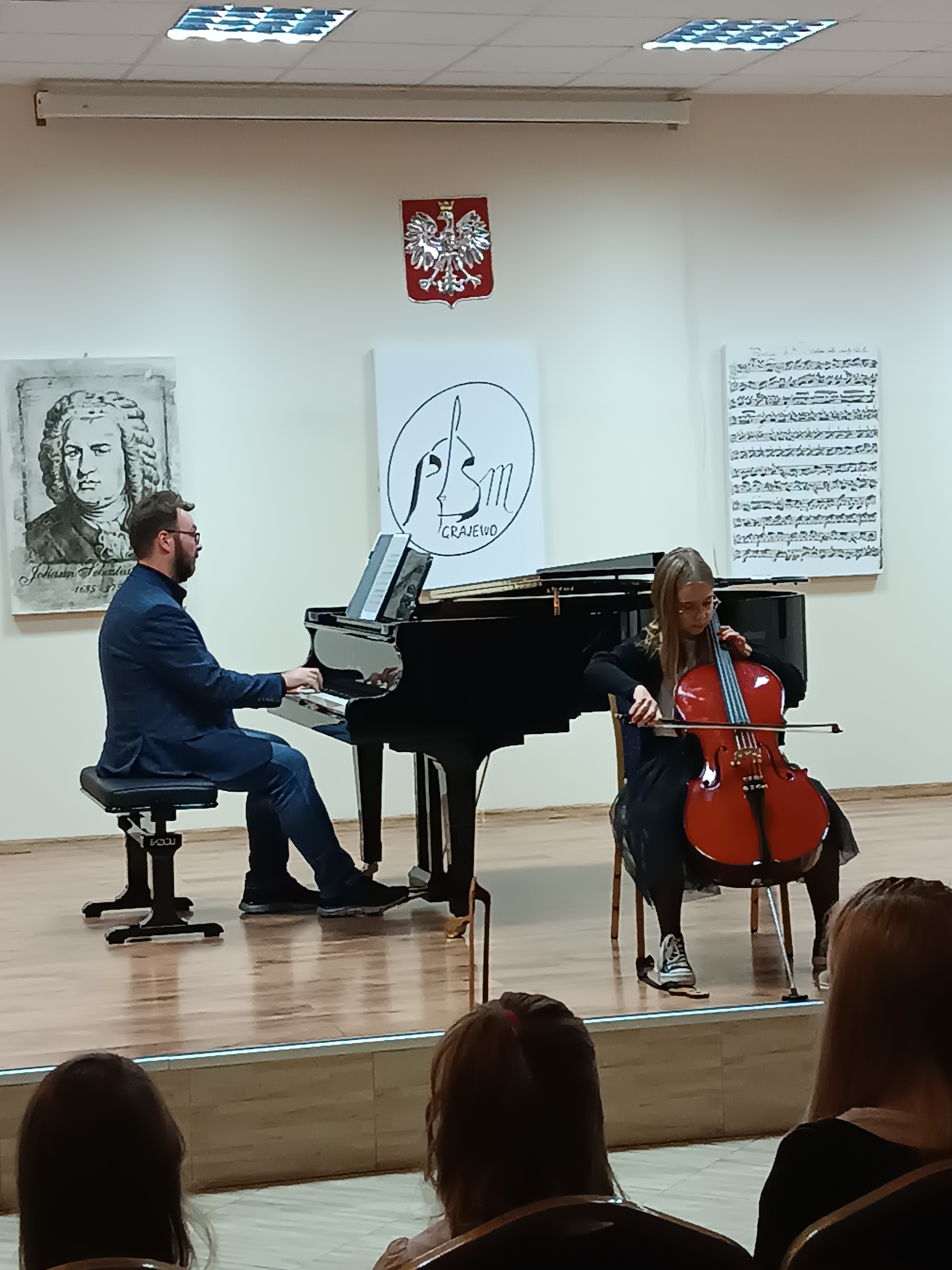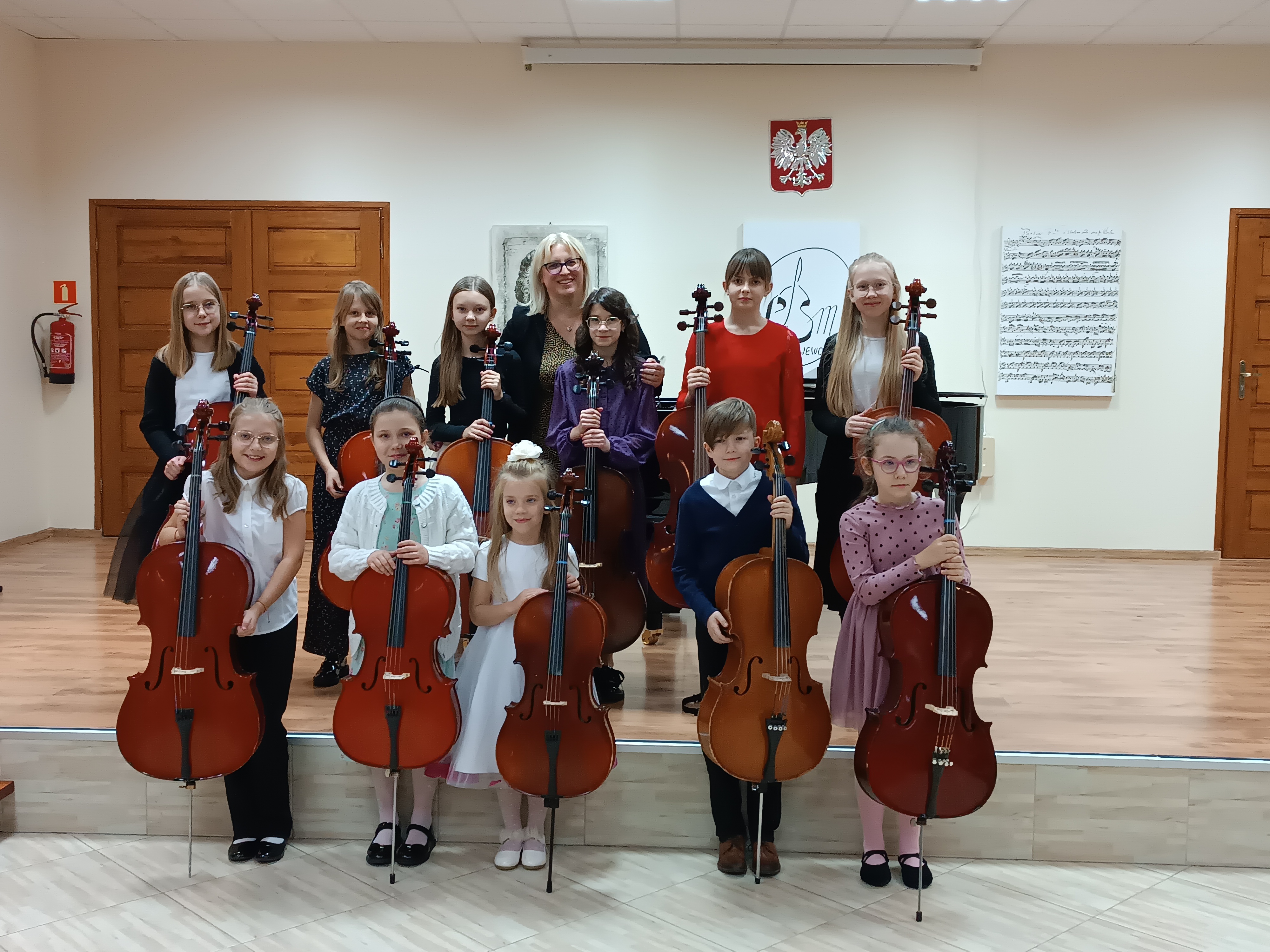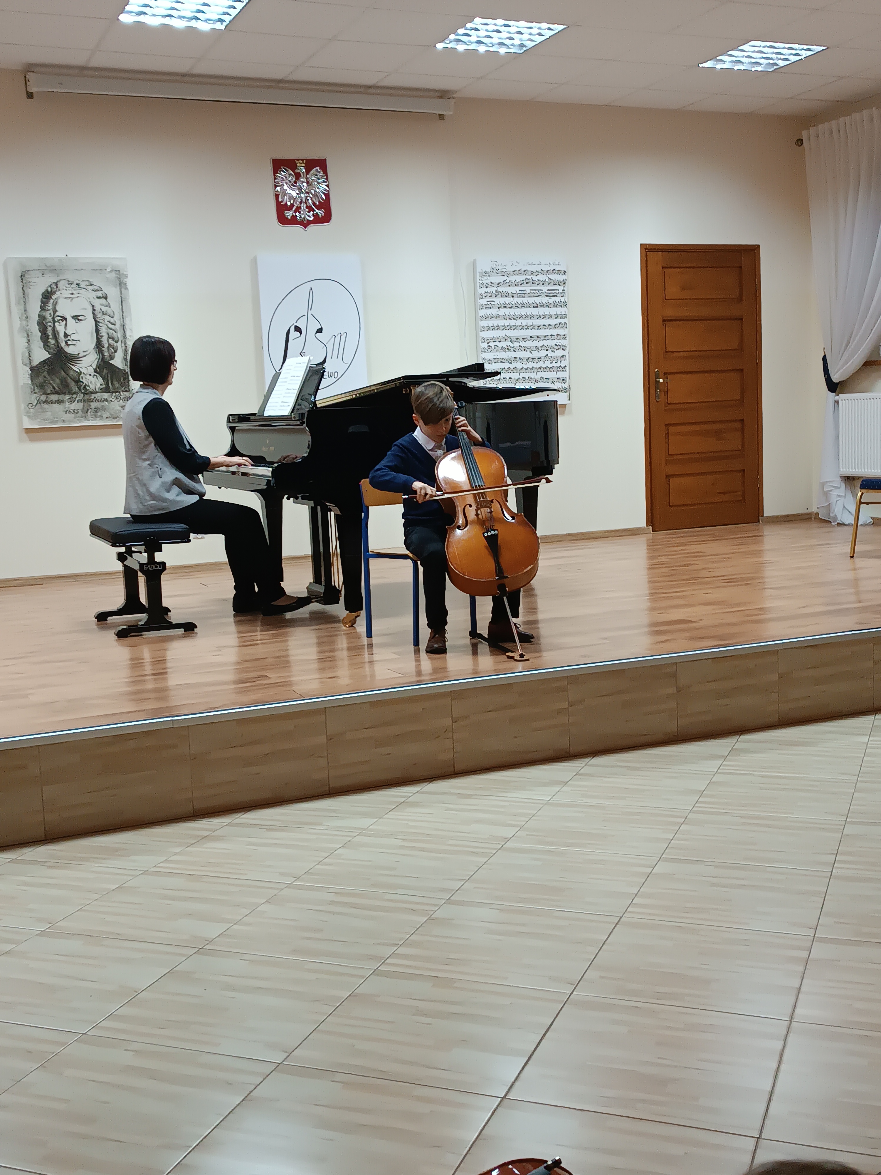 21 listopada 2023 roku popłynęły na koncercie przepiękne dźwięki wiolonczeli w wykonaniu uczniów Pani Urszuli Właźniak: