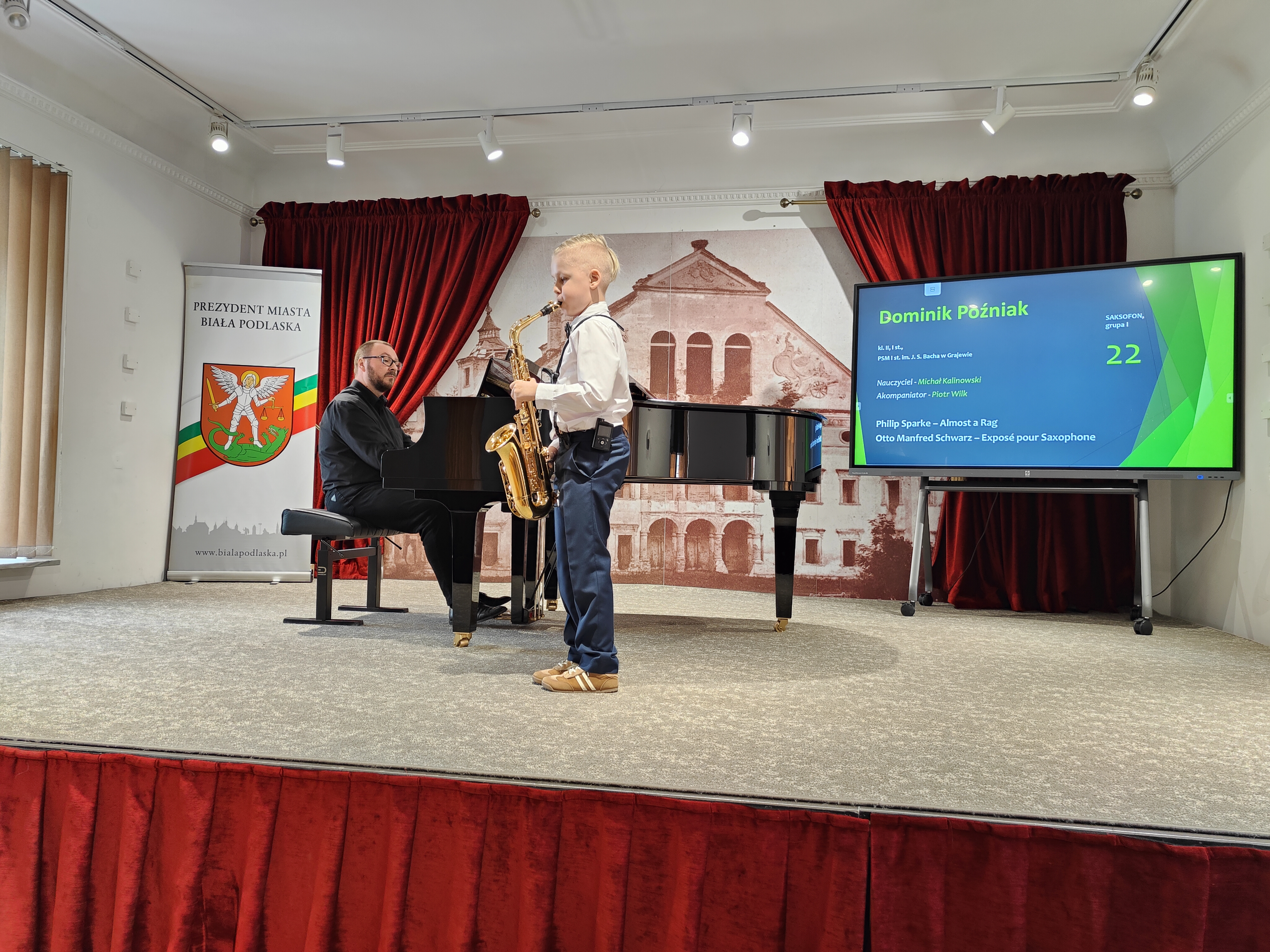 Przy fortepianie towarzyszył Piotr Wilk, który został nagrodzony dyplomem za wyróżniający akompaniament.