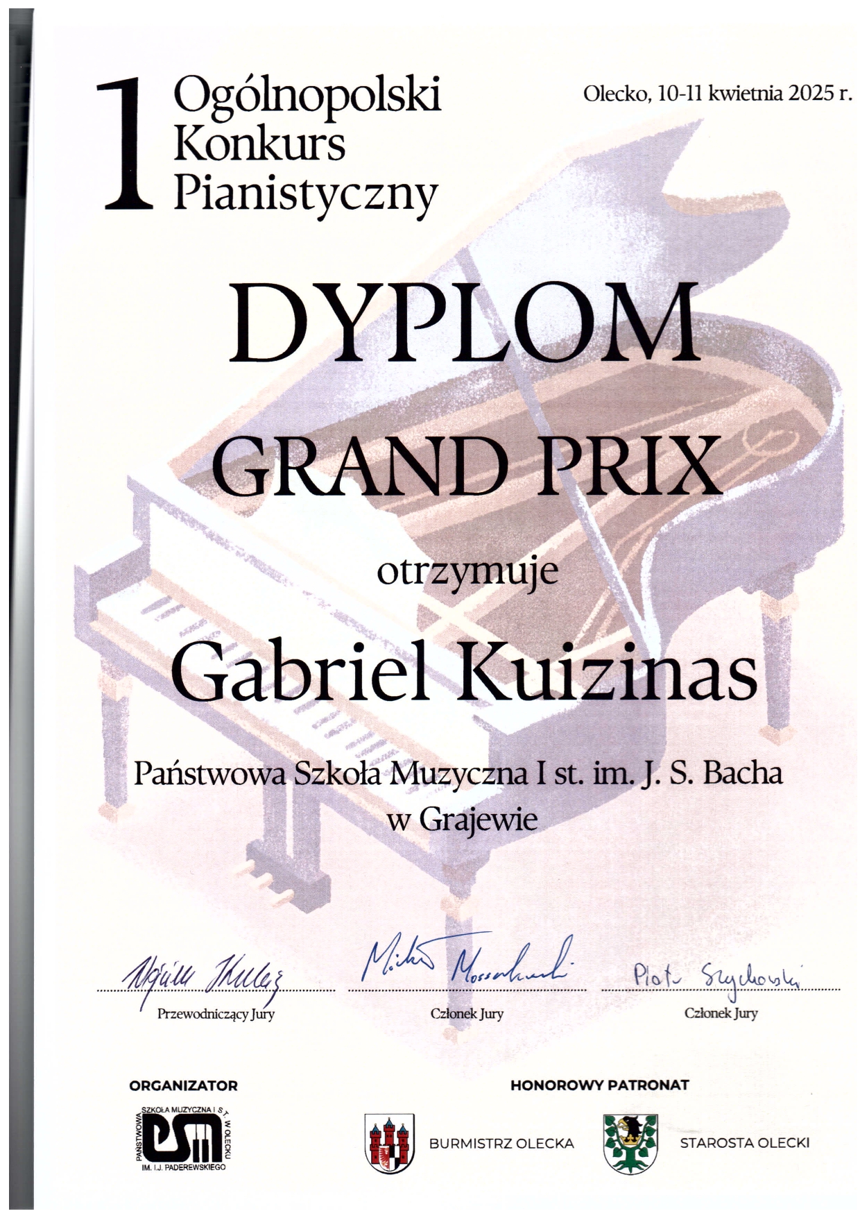Gabriel Kuizinas - I Ogólnopolski Konkurs Pianistyczny w Olecku - nagroda Grand Prix - 10-11 kwietnia 2025