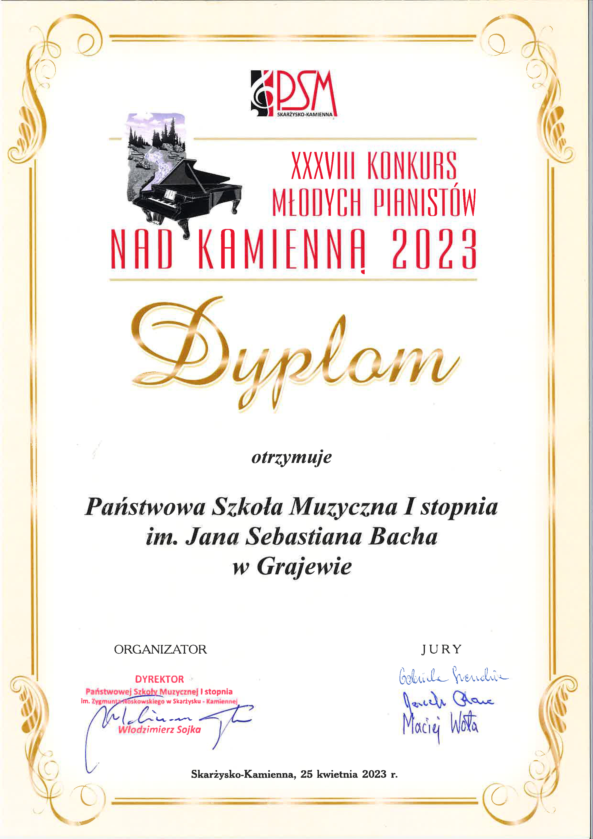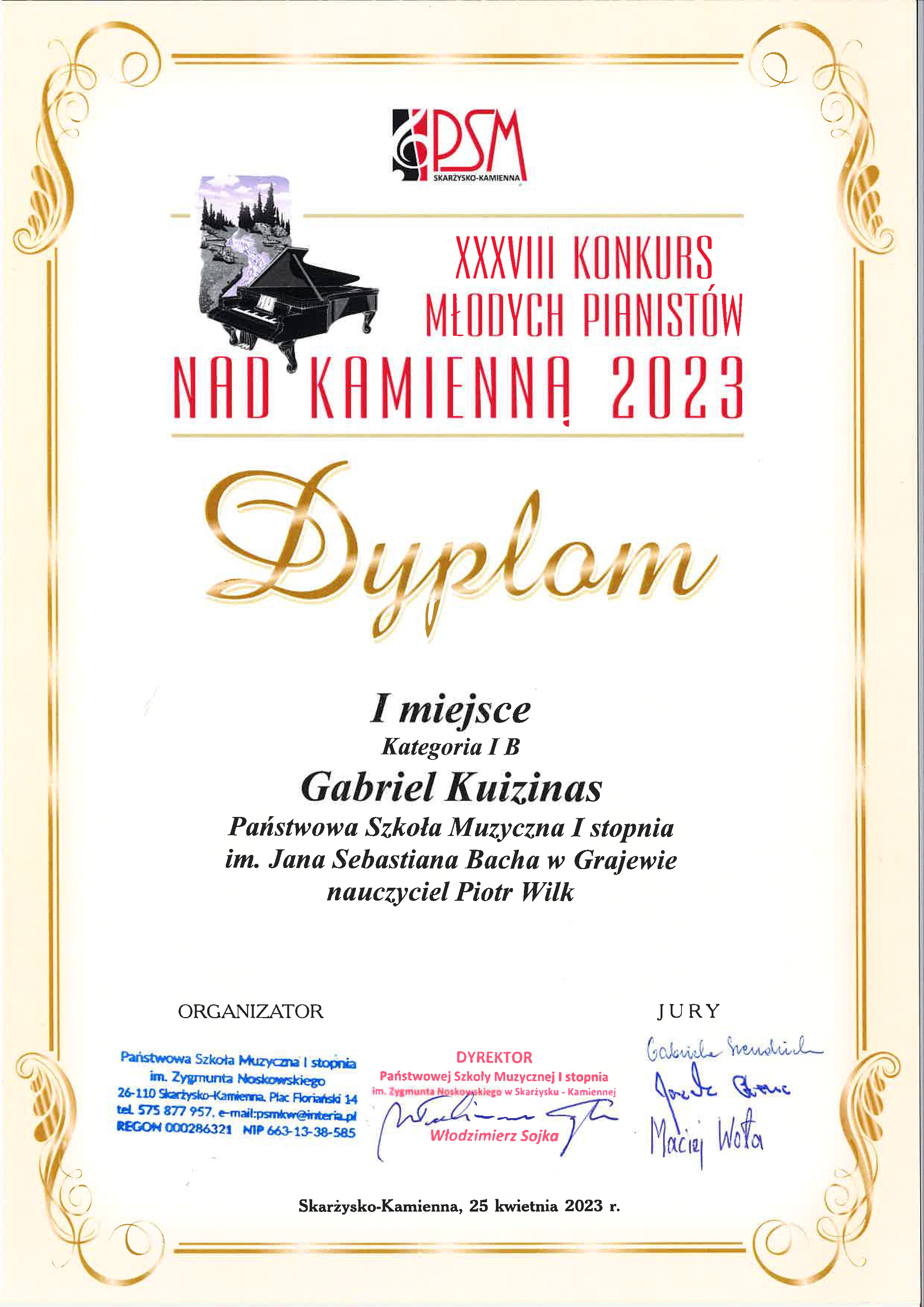 I miejsce w XXXVIII konkursie młodych pianistów nad Kamienną 2023