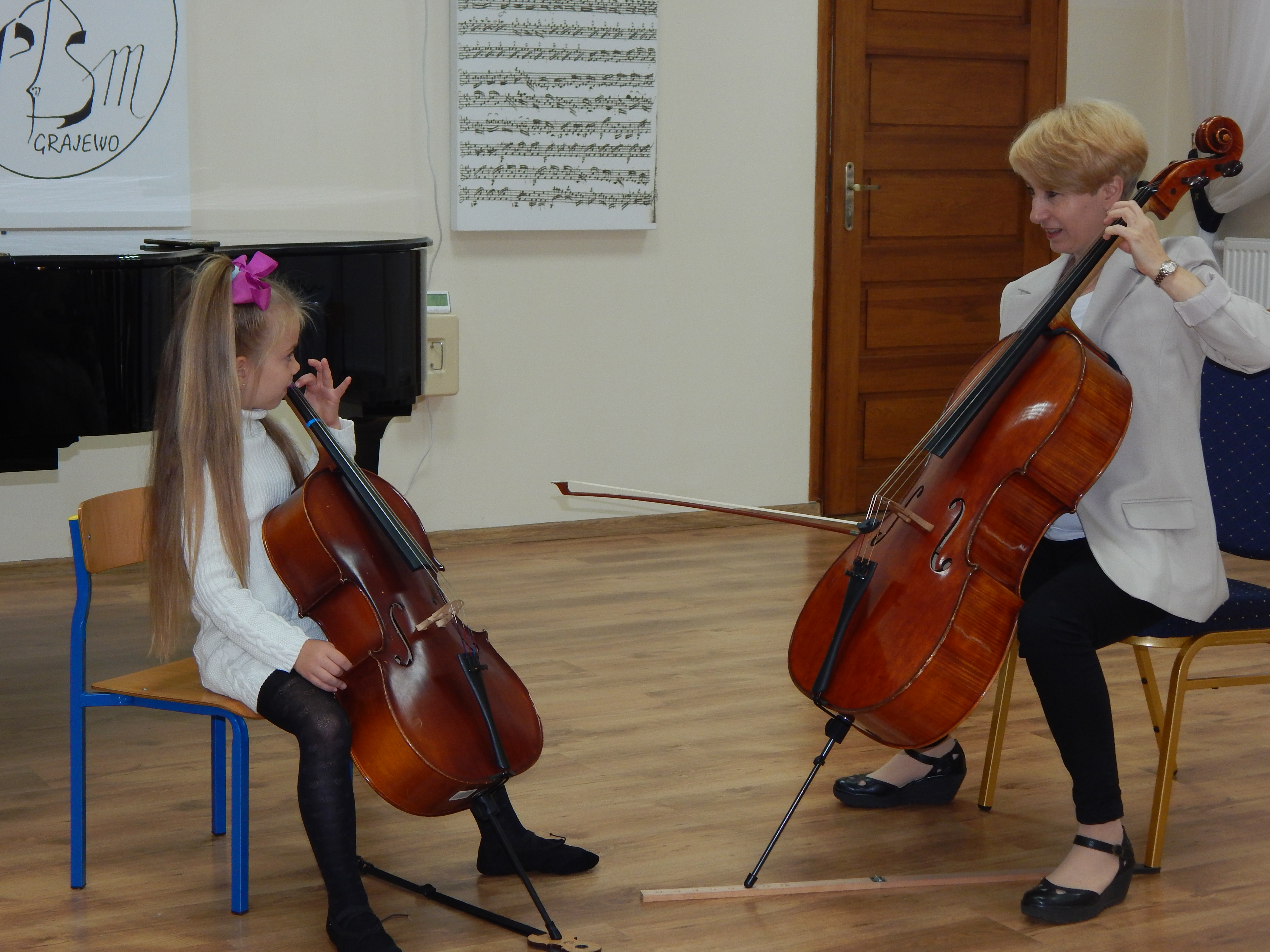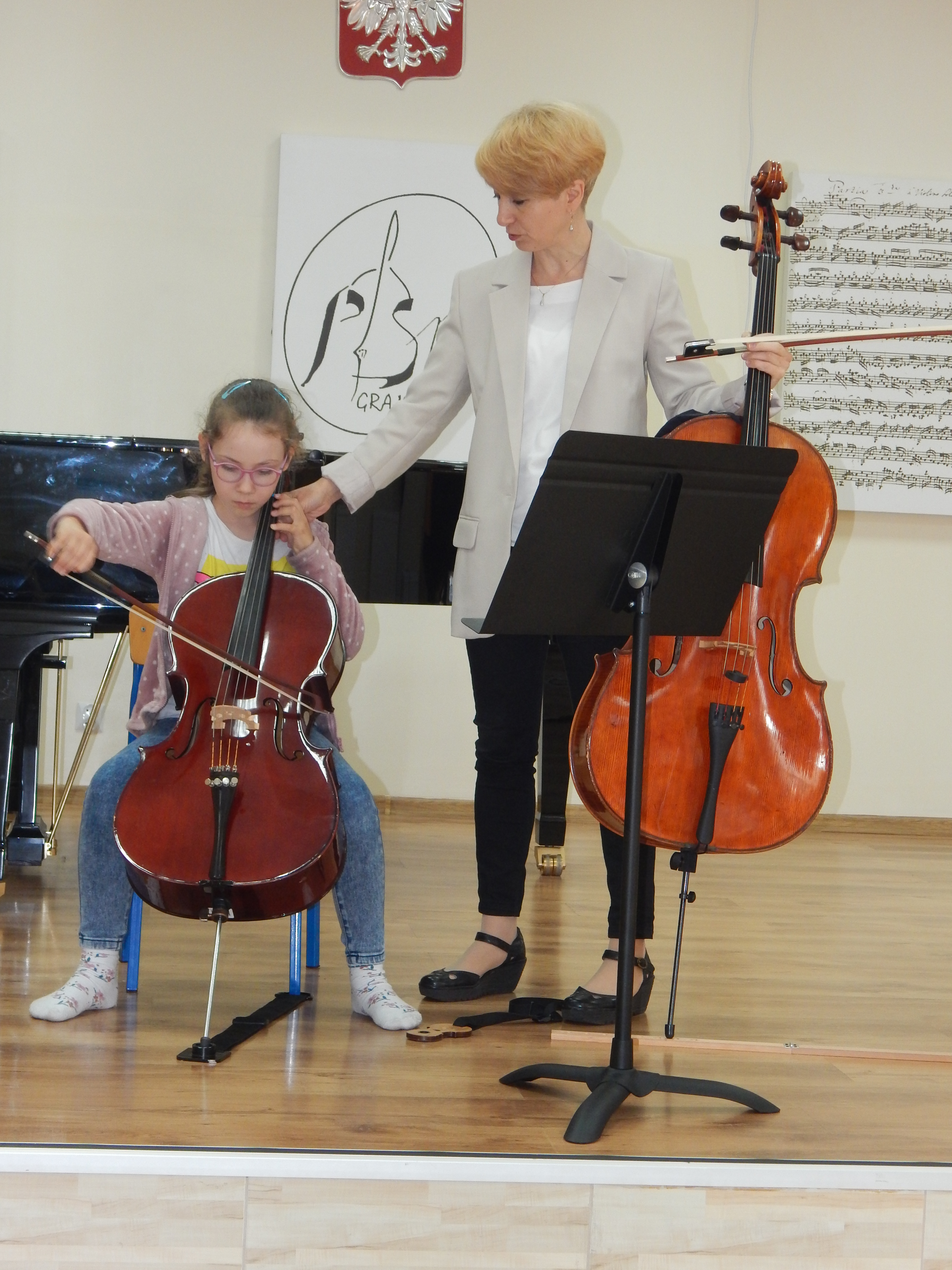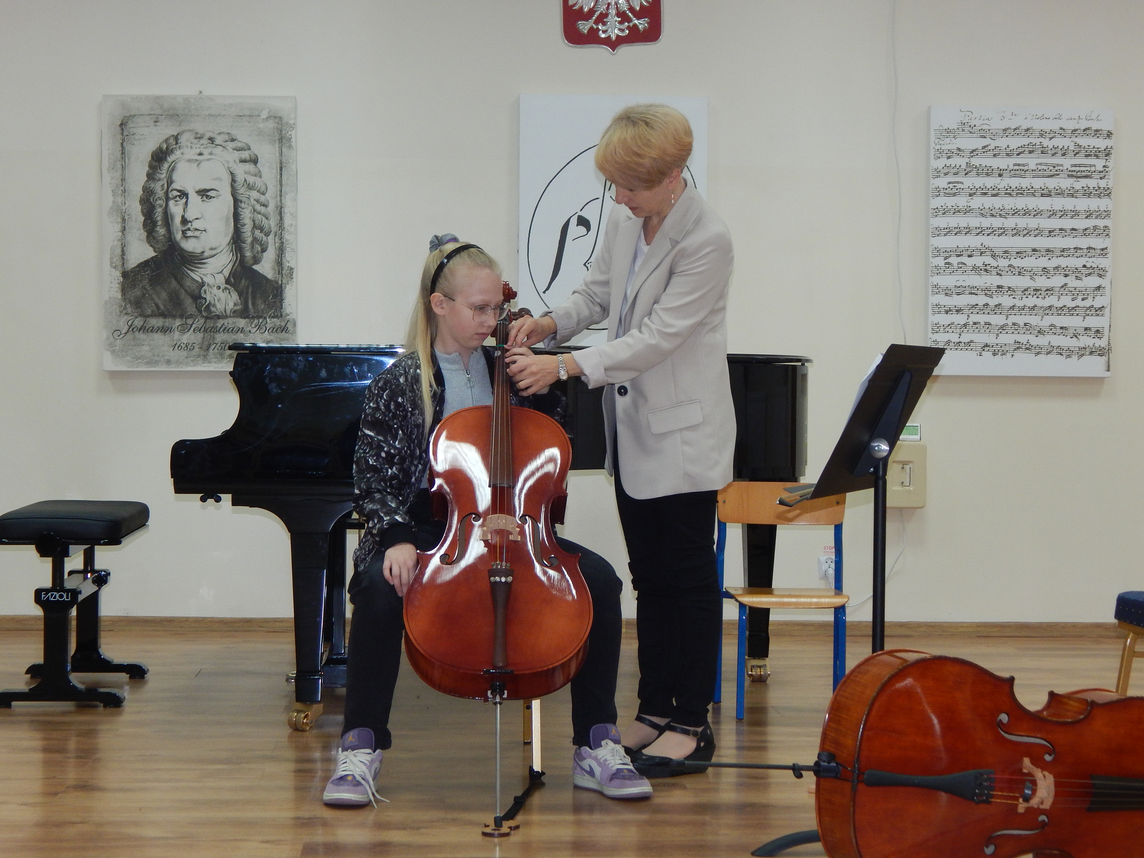 7 października 2023 roku uczniowie z klasy wiolonczeli uczestniczyli w II warsztatach wiolonczelowych z cyklu ,,Akademia Młodego Wiolonczelisty" prowadzonych przez Panią Annę Skibińską- Haponiuk. Tematem przewodnim konsultacji był:,, Aparat gry i technika wydobycia dźwięku na wiolonczeli". Dzieci z zainteresowaniem uczestniczyły w lekcjach indywidualnych prowadzonych przez Naszego Gościa. Wiolonczeliści poznali ćwiczenia na prawą i lewą rękę, które usprawnią i wzmocnią aparat gry na wiolonczeli. Uzyskali wskazówki dotyczące techniki wydobycia dźwięku na instrumencie. Podczas przerw spędzili czas na integracji i rozmowach przy pizzy oraz słodkim poczęstunku przygotowanym przez Rodziców uczniów. Serdecznie dziękujemy Pani Annie Skibińskiej-Haponiuk za przeprowadzenie warsztatów a Rodzicom za przygotowanie poczęstunku.