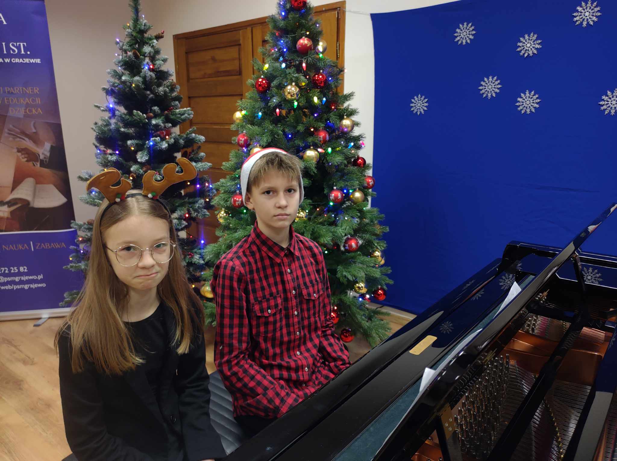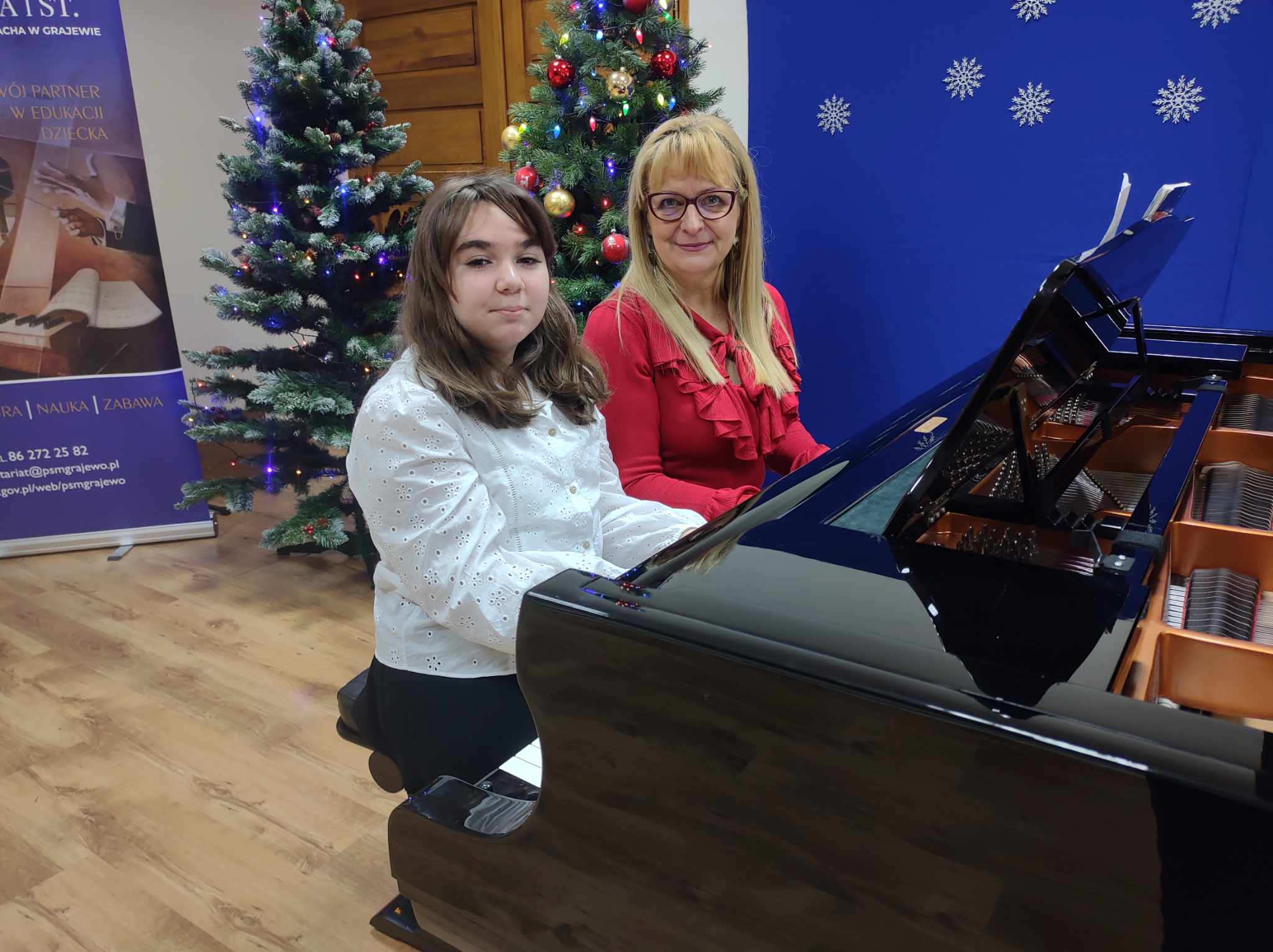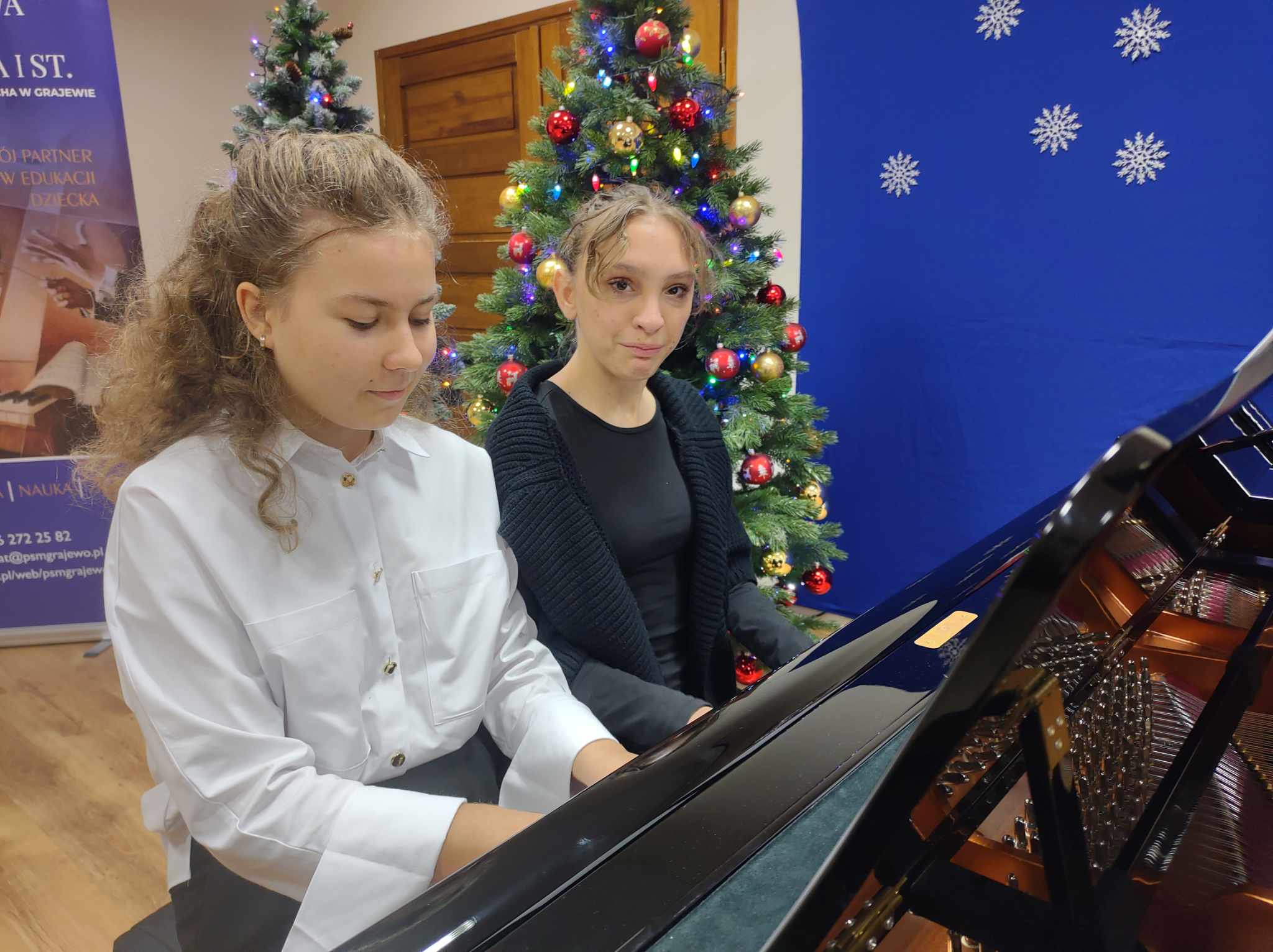 W sobotnie przedpołudnie, 14 grudnia, uczniowie klasy fortepianu głównego i dodatkowego Agnieszki Zadroga spotkali się w sali koncertowej grajewskiej szkoły muzycznym na koncercie pt.:"Kolędować czas zacząć". Podczas koncertu uczniowie zagrali na fortepianie polskie i zagraniczne kolędy a także świąteczne utwory amerykańskie. Młodzi artyści występowali grając solo, w duecie z drugim uczniem lub nauczycielką. W świątecznym wystroju sali koncertowej muzyka brzmiała bardzo nastrojowo, zwłaszcza, że uczniowie zadbali także o swój własny strój koncertowy zdobiąc go elementami świątecznymi. Wszystko razem stworzyło świąteczną atmosferę, czemu dowód dużym aplauzem dała zgromadzona publiczność. Brawa jeszcze raz dla występujących uczniów i ich nauczycielki - Agnieszki Zadroga, za wspólnie przygotowany ten niecodzienny zimowo-świąteczny koncert. A publiczności za wspólne śpiewanie kolęd.