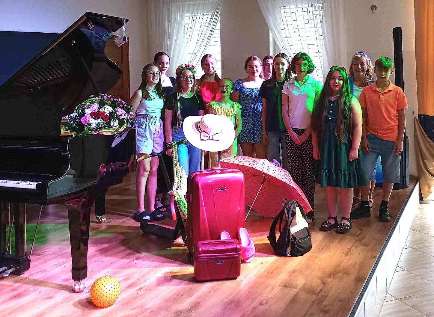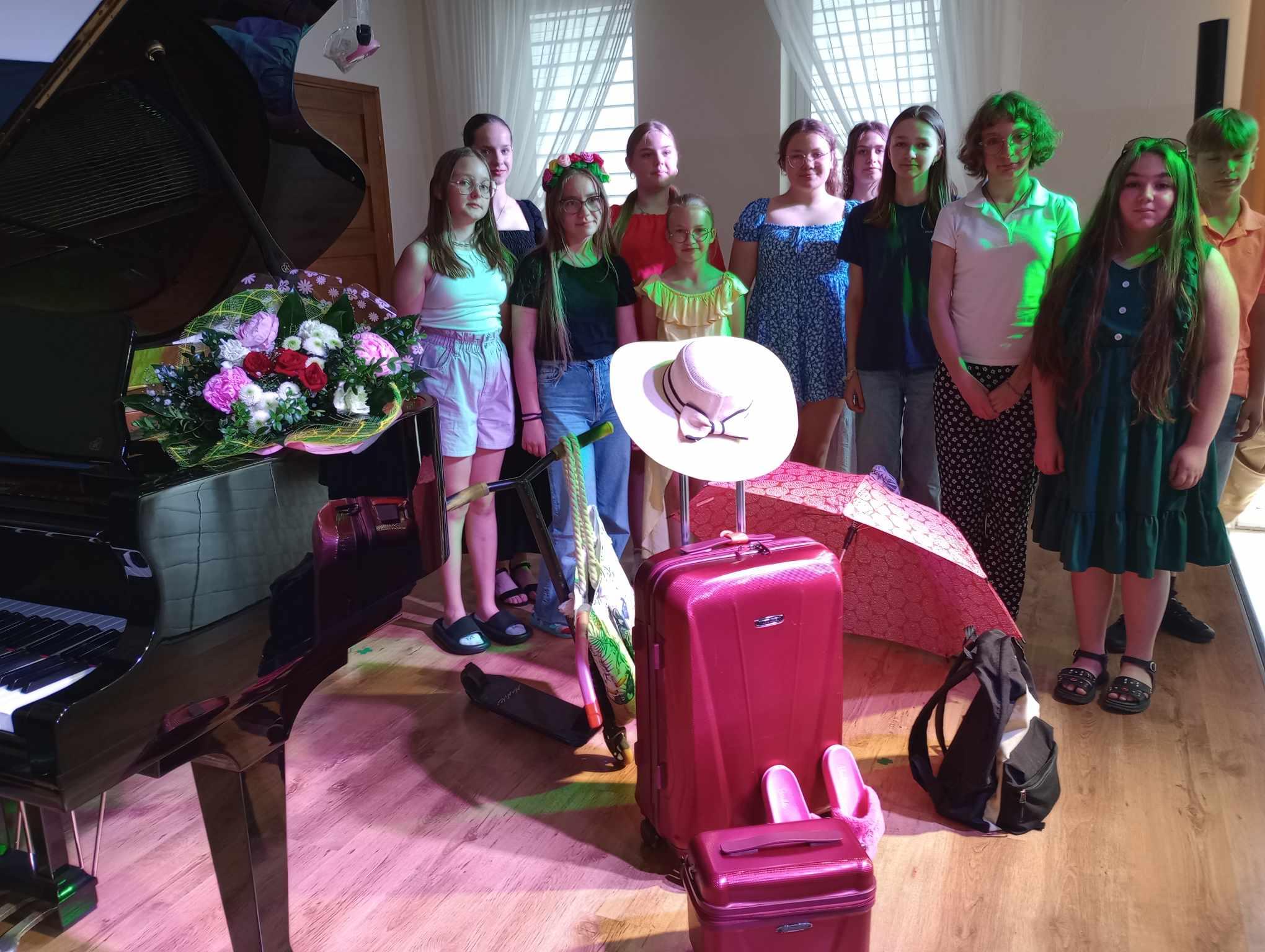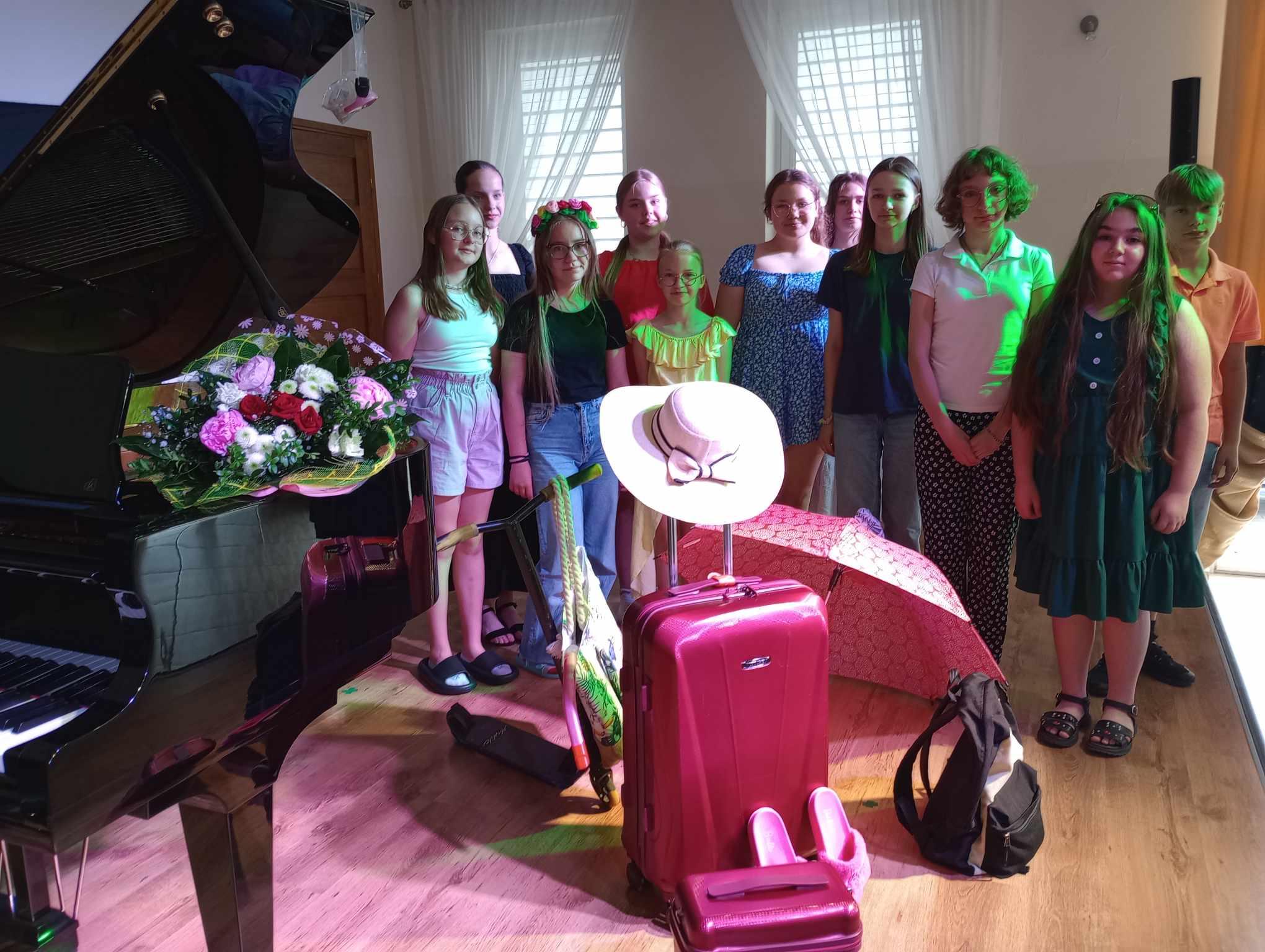 14 czerwca 2024 r. odbył się przedwakacyjny koncert klasy fortepianu głównego i dodatkowego Agnieszki Zadroga. Uczniowie wykonywali utwory solowe oraz na 4 ręce, które wykonywali z koleżanką lub z nauczycielką. Wszyscy ubrani byli kolorowo, wakacyjnie. Scena udekorowana została w akcesoria związane z wakacjami i urlopem. Zachęcała do przygotowania się do tematu wakacji i odpoczynku, co miało na celu zniwelować poczucie niepewności i stresu na scenie.