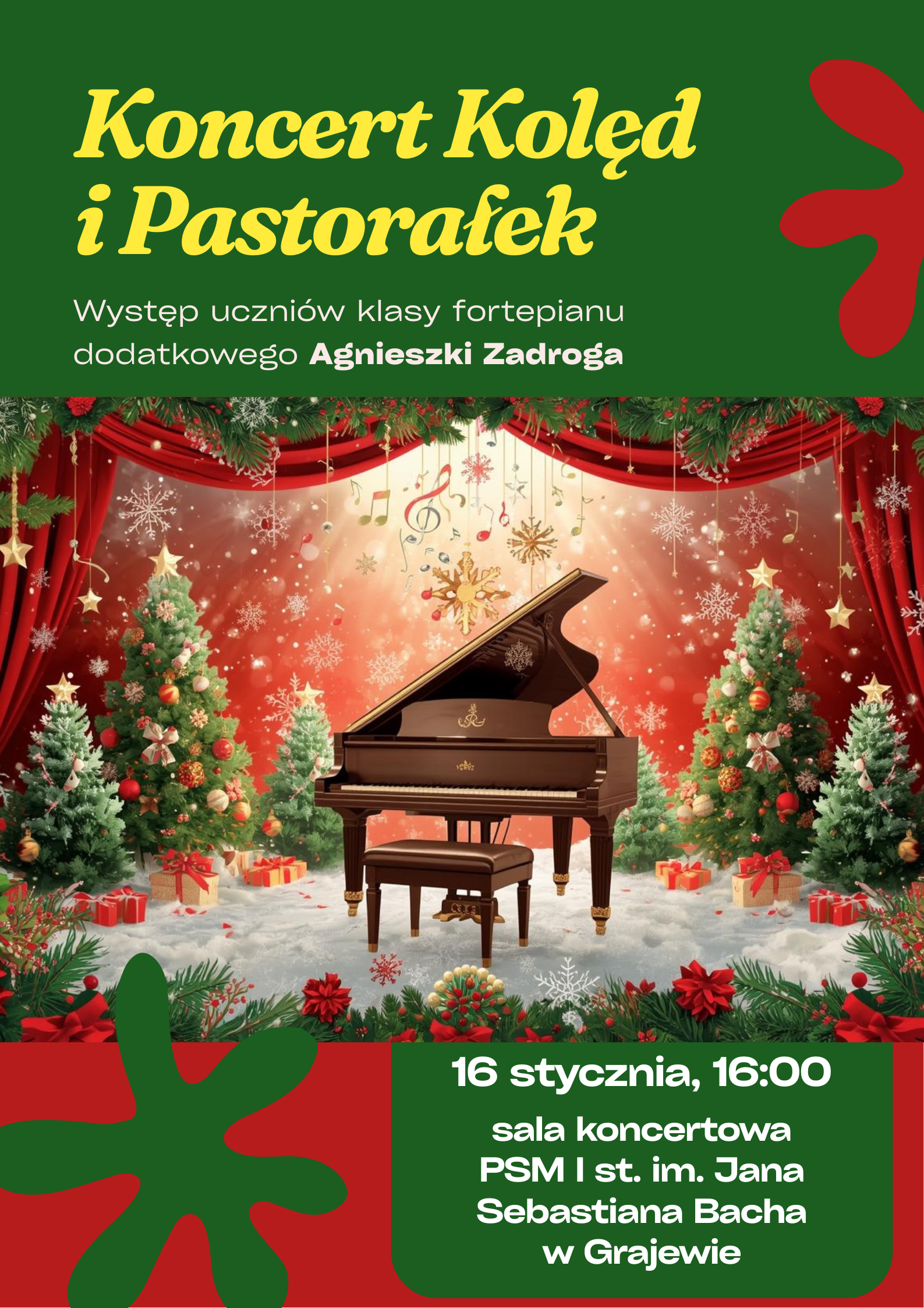 Zapraszamy na występ uczniów klasy fortepianu dodatkowego klasy Agnieszki Zadroga. Szczegóły na plakacie.