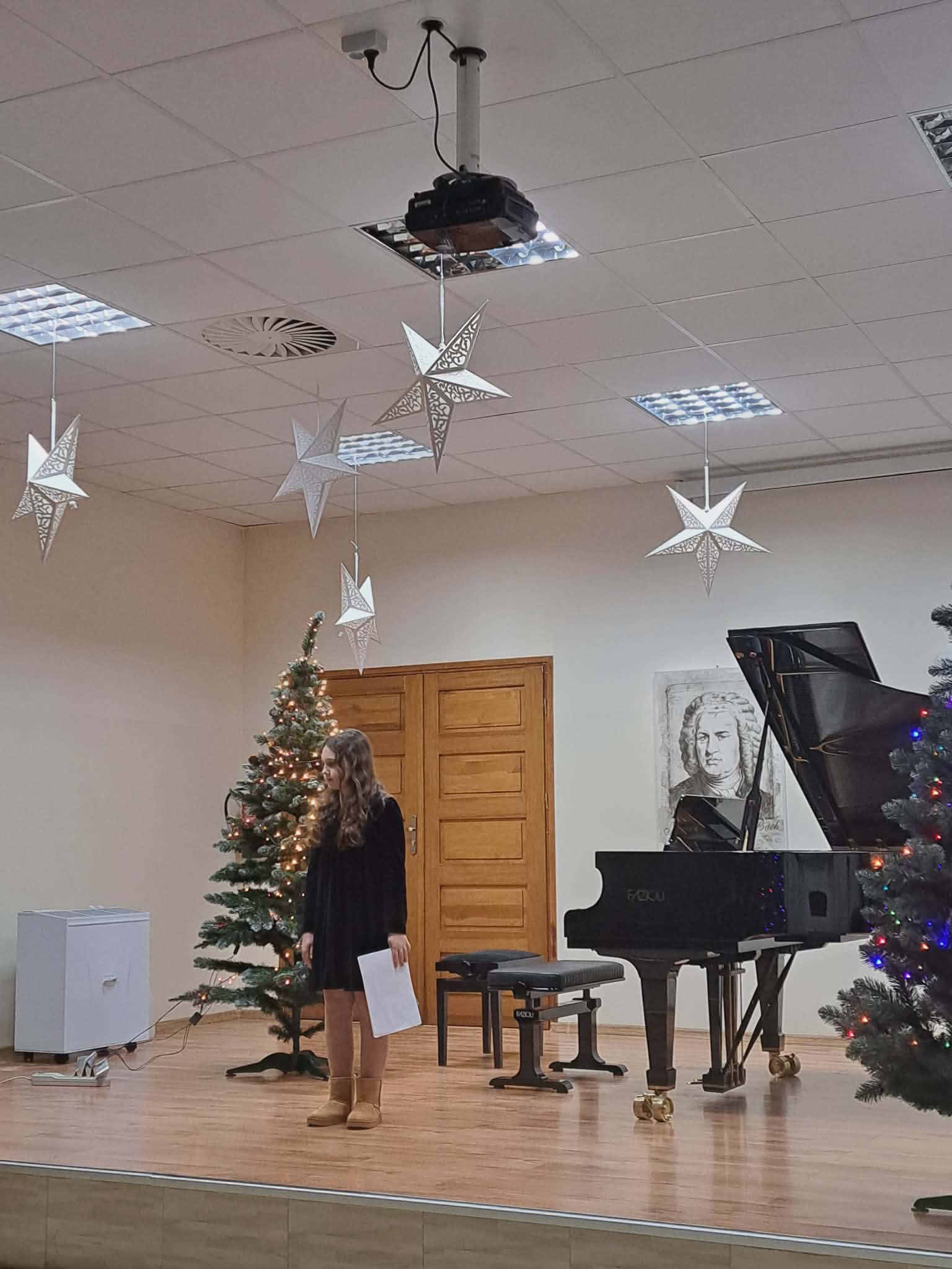 Koncert kolęd i pastorałek w wykonaniu uczniów klasy fortepianu dodatkowego Agnieszki Zadroga, który odbył się 16 stycznia, zamknął działalność koncertową szkoły w I półroczu. Uczniowie zaprezentowali kolędy i pastorałki solo oraz w duetach. Wszyscy byli z koncertu bardzo zadowoleni zwłaszcza, że zaczynały się włąśnie ferie zimowe:) Piękny koncert na zakończenie półrocznej pracy. Brawo uczniowie:)