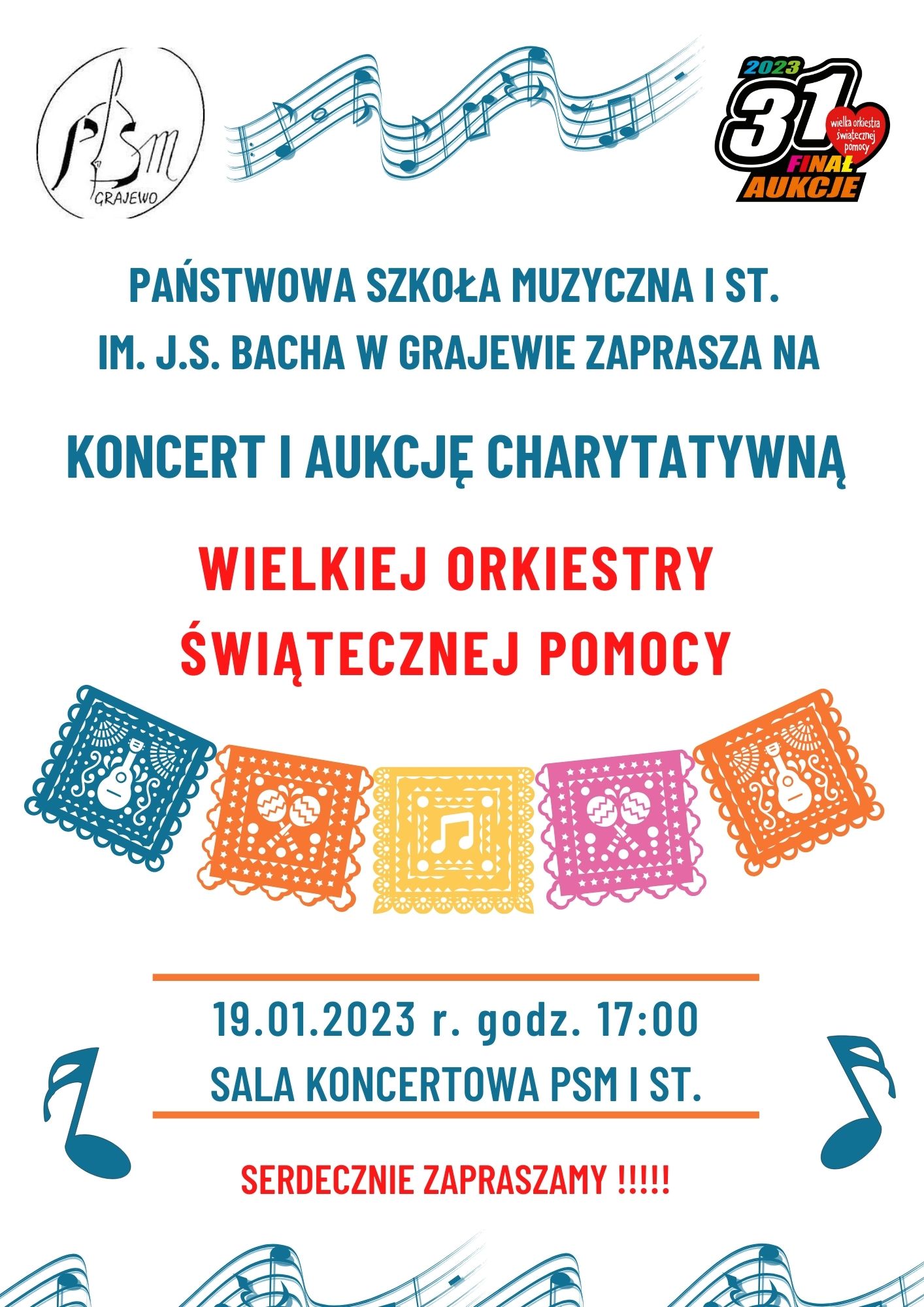 Jak co roku zaprezentują się uczniowie Państwowej Szkoły Muzycznej w Grajewie i będzie można usłyszeć bardzo zróżnicowany repertuar: od klasyki po rozrywkę. Nie zabranie wrażeń muzycznych oraz dynamicznych licytacji.