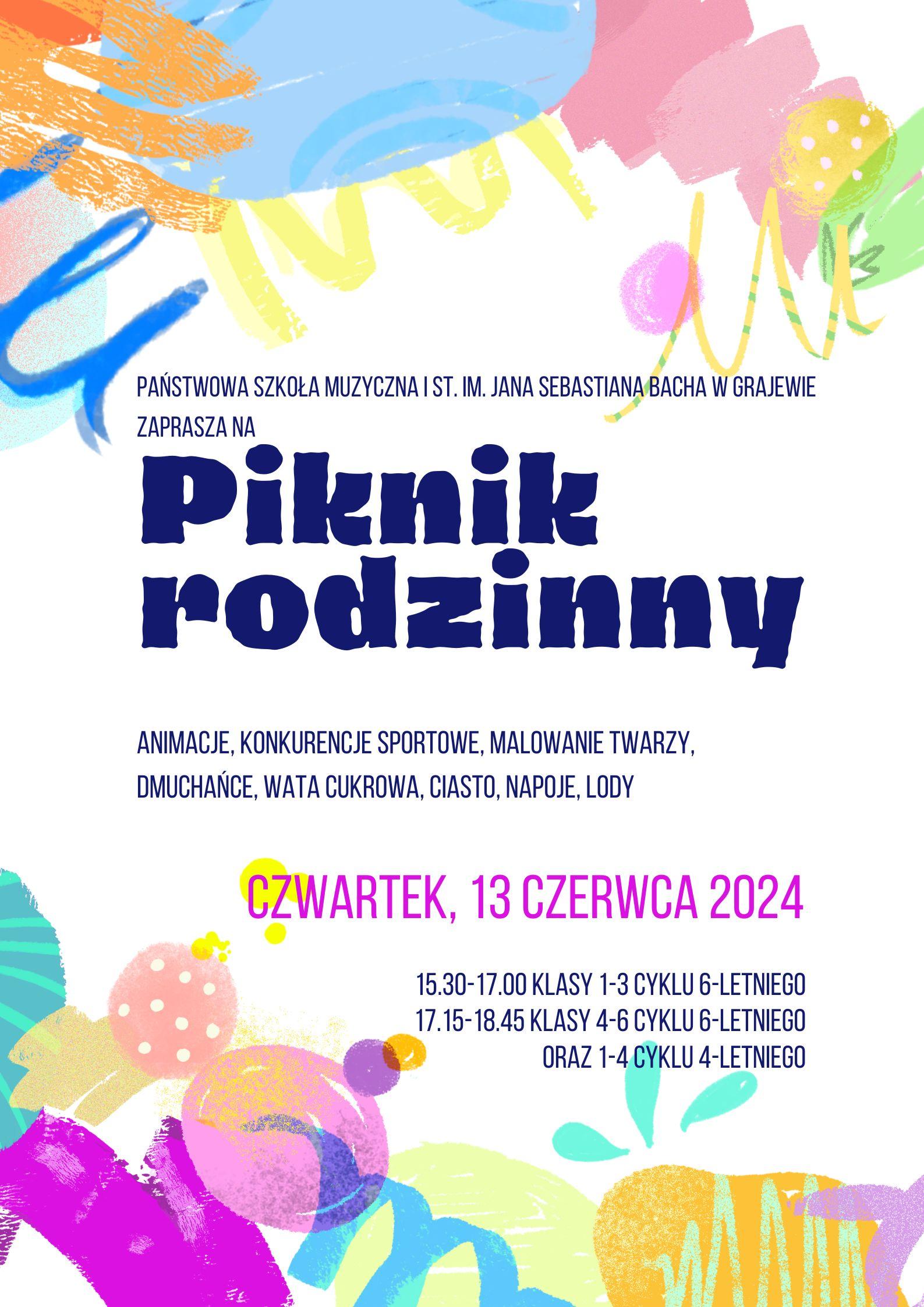 Serdecznie zapraszamy wszystkich uczniów wraz z rodzinami do wspólnej zabawy na rodzinnym pikniku, który odbędzie się 13 czerwca 2024r. (czwartek). Gwarantujemy ogrom zabawy i mile spędzony czas.